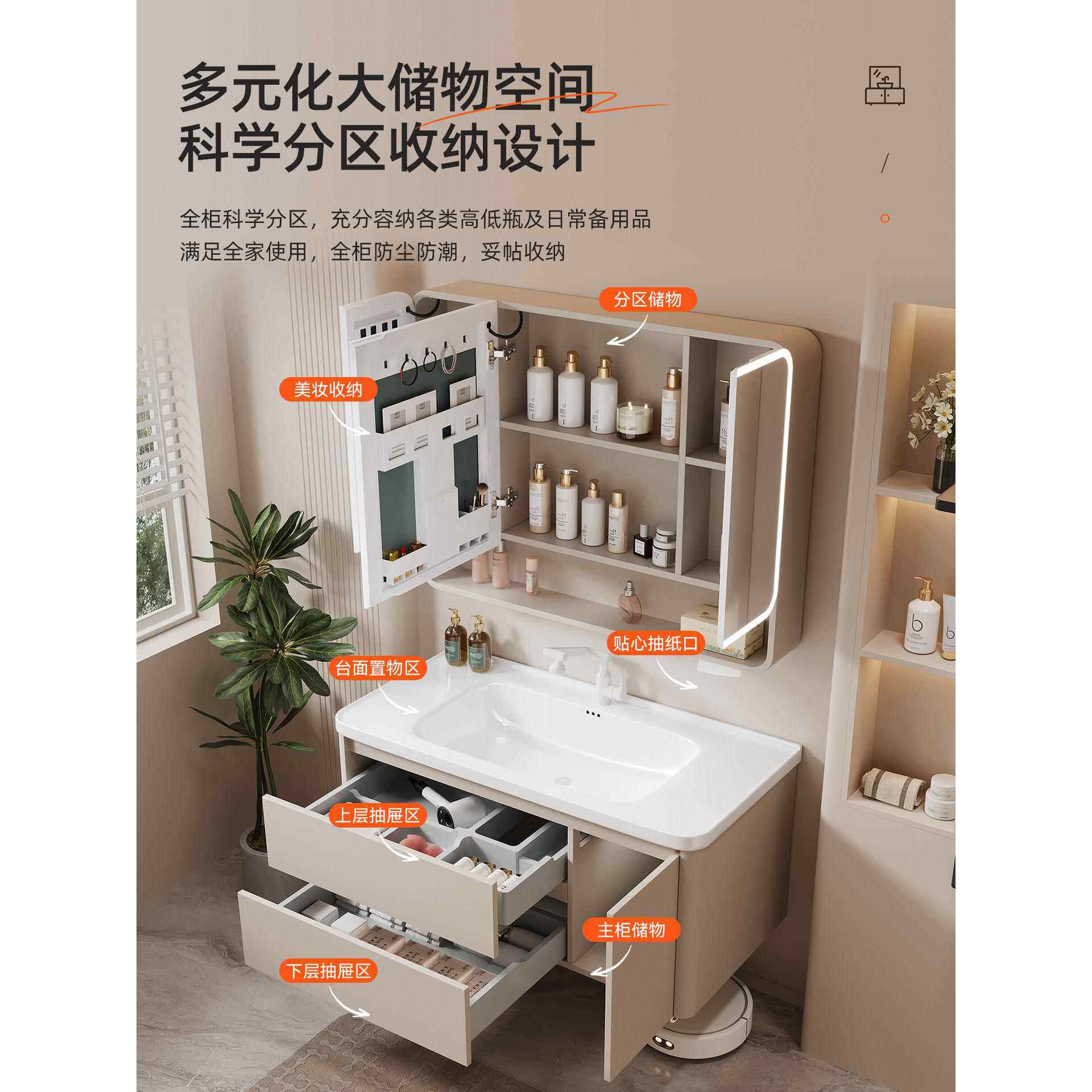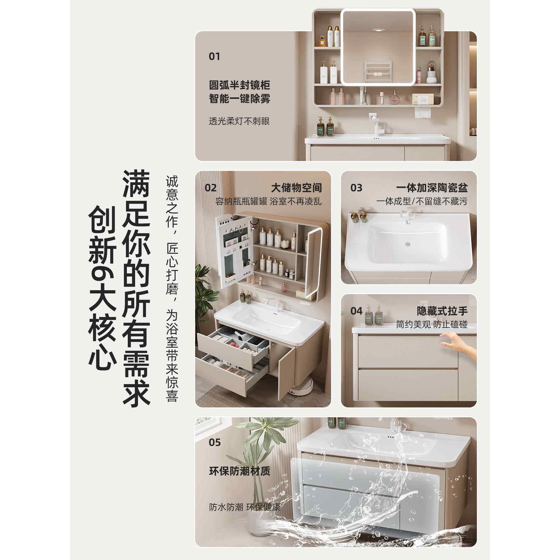 蜂窝铝浴室柜组合弧形陶瓷一体化面盆洗手盆手盆浴室柜120cm