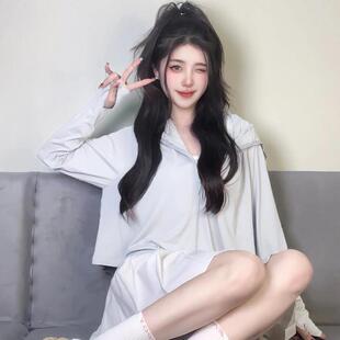 上衣0325e 户外V防晒服宽松开衫 灰色冰丝防晒衣女夏薄款 2026新款