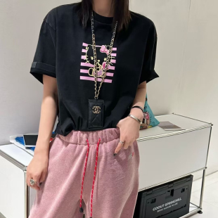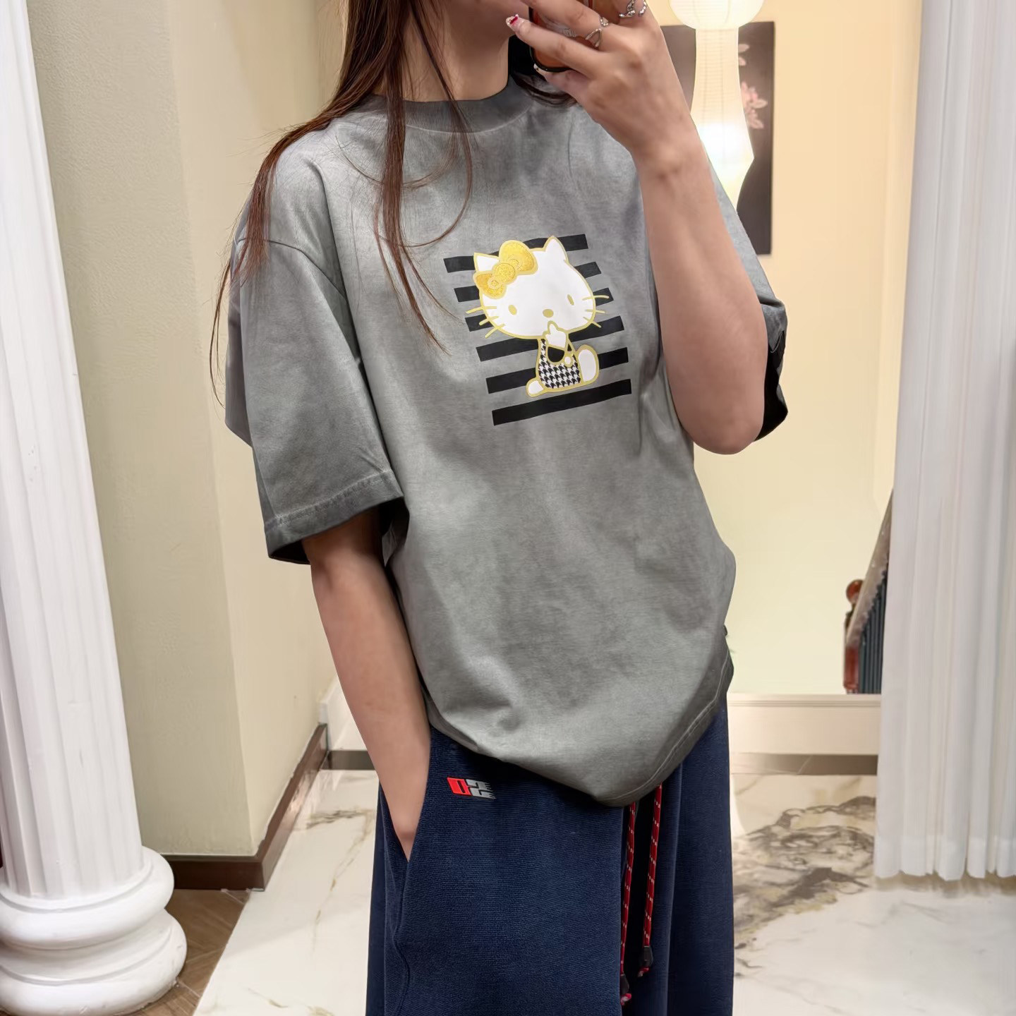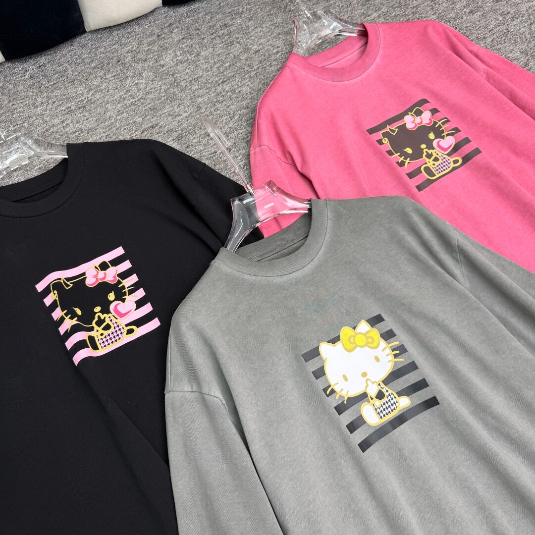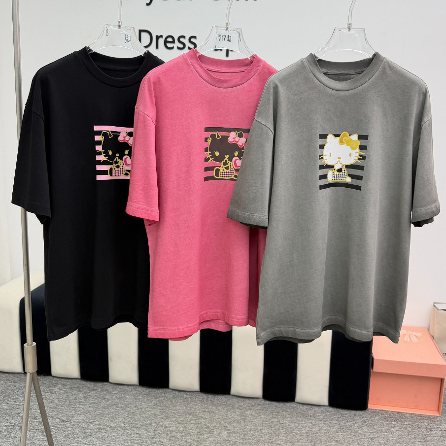 高品 T恤猫咪图案宽松上衣女26早春 小众三色做旧kitty印花短袖