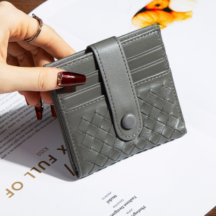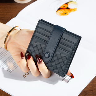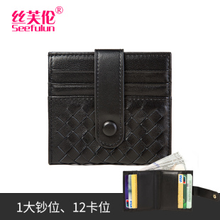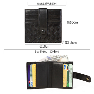 12卡位超薄款 折叠小钱包男女通用手工编织羊皮大钞夹卡包 真皮短款