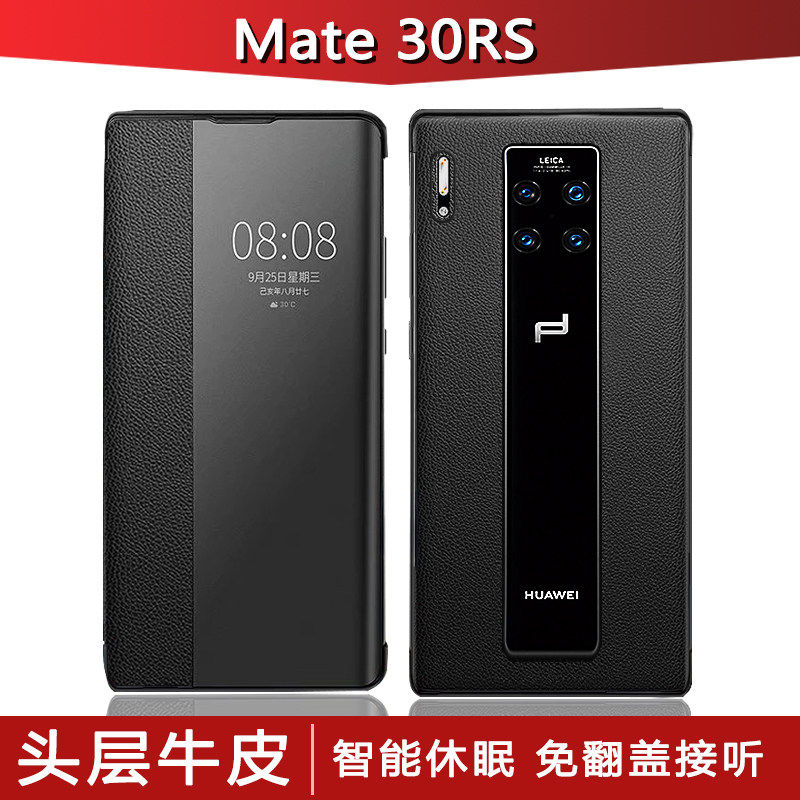适用华为mate30rs保时捷手机壳真皮翻盖Rs限量版 智能视窗防摔保护皮套m30 mete30全包高档mt30设计5g新款