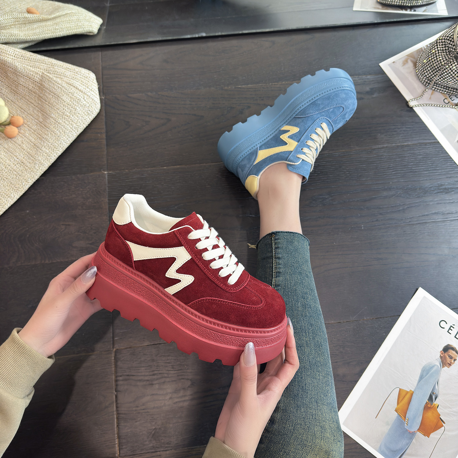 厚底松糕底运动真皮女鞋 运动老爹鞋 新款 子 IG增高7CM2026春季