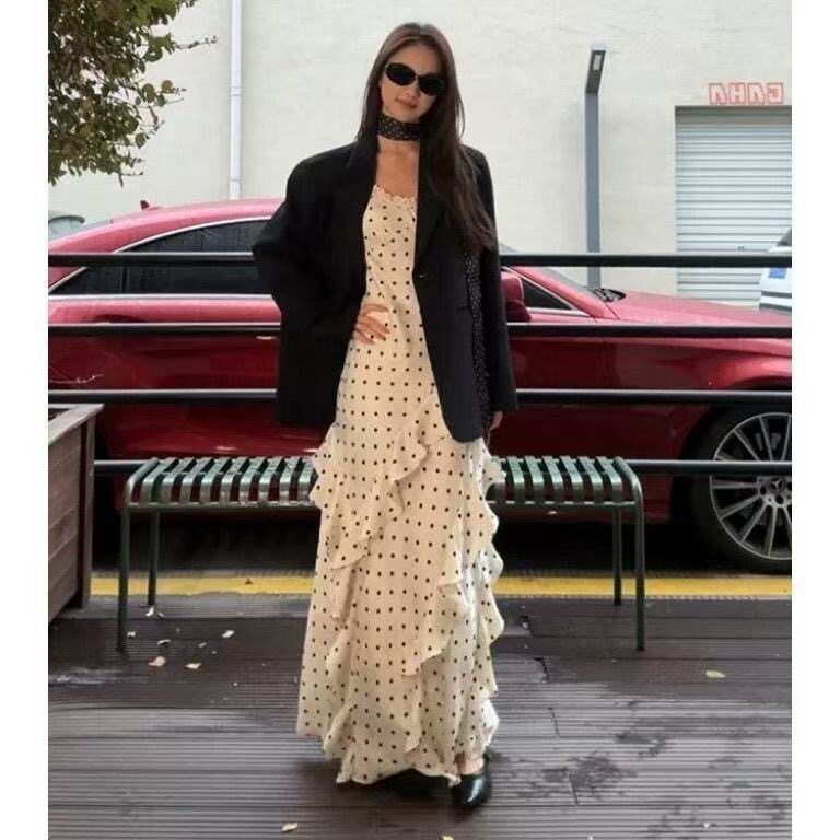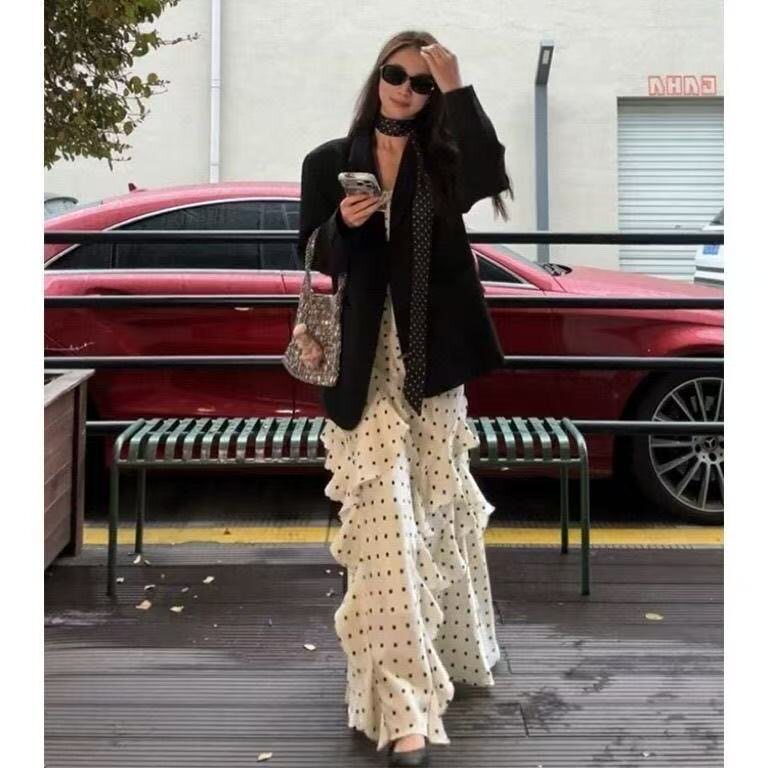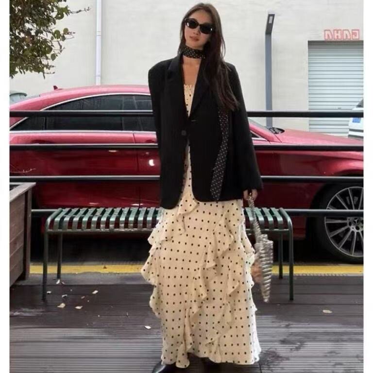 韩系高级感黑色显瘦通勤西服外套千金风波点连衣裙套装 春季 新款