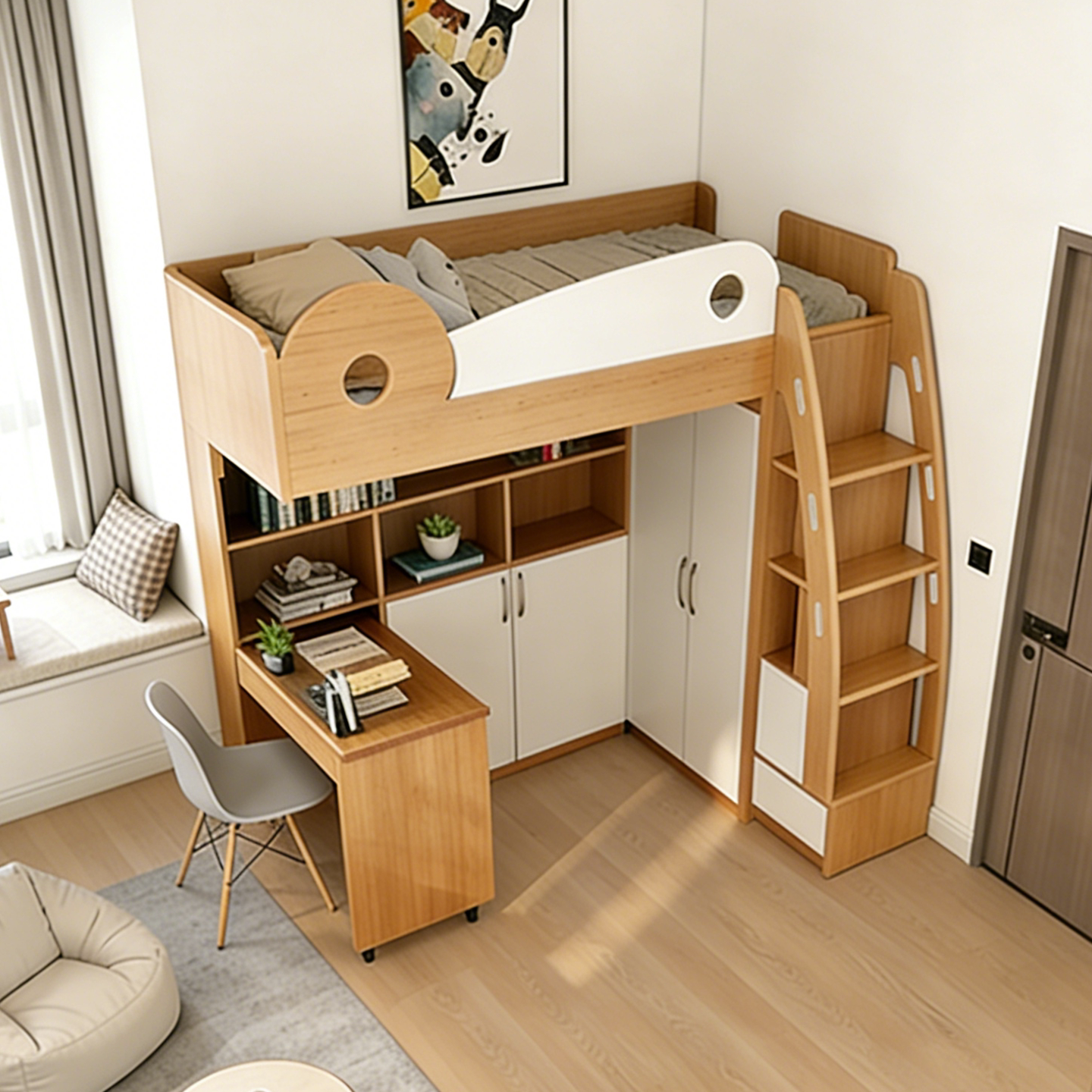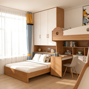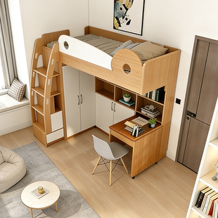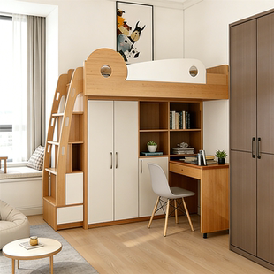小户型省空间最大化实木组合半高架床上面床下面衣柜书桌一体定制