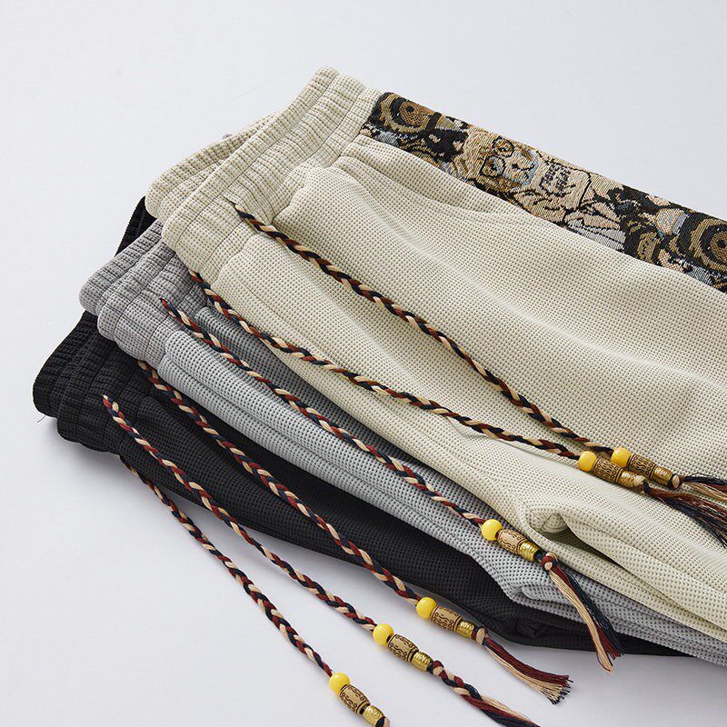 夏季 男式 青年裤 子国潮五分休闲运动裤 大码 沙滩裤 胖人国风刺绣短裤