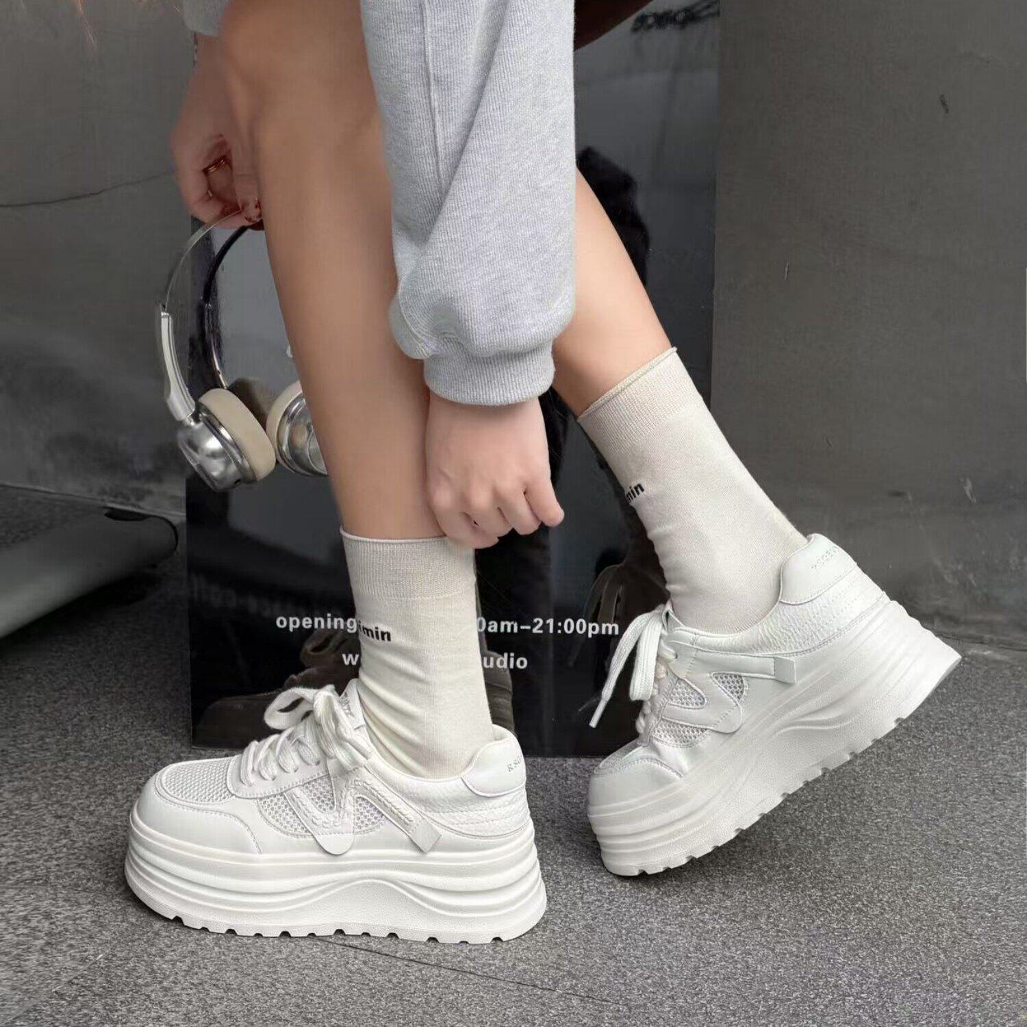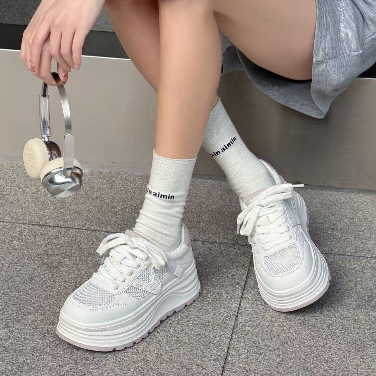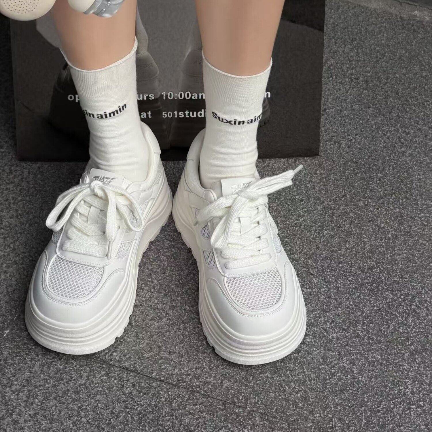 小白鞋 韩版 新单网透气超火百搭时尚 增高6cm2026夏季 厚底休闲板鞋