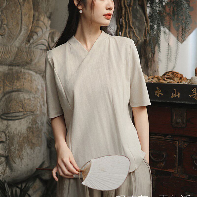 P佛系禅意女装 茶服复古中国风亚麻衬衫 茶艺 禅服女禅意新中式 新品