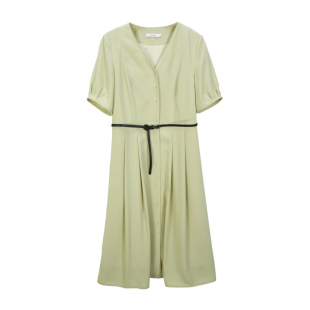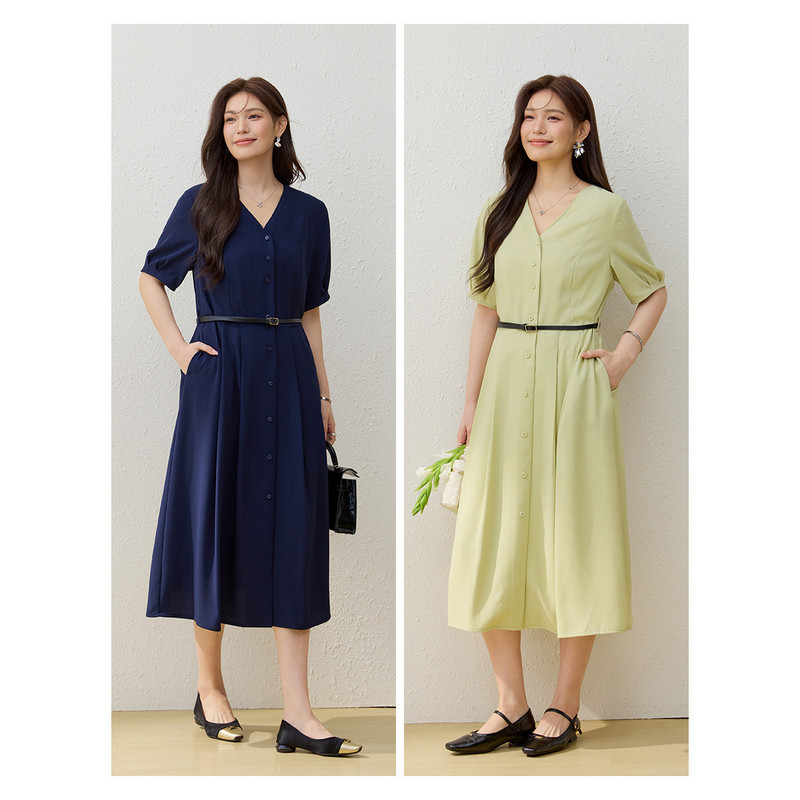 知性通勤收腰长裙胖mm夏装 女装 纤莉秀大码 新款 气质V领连衣裙