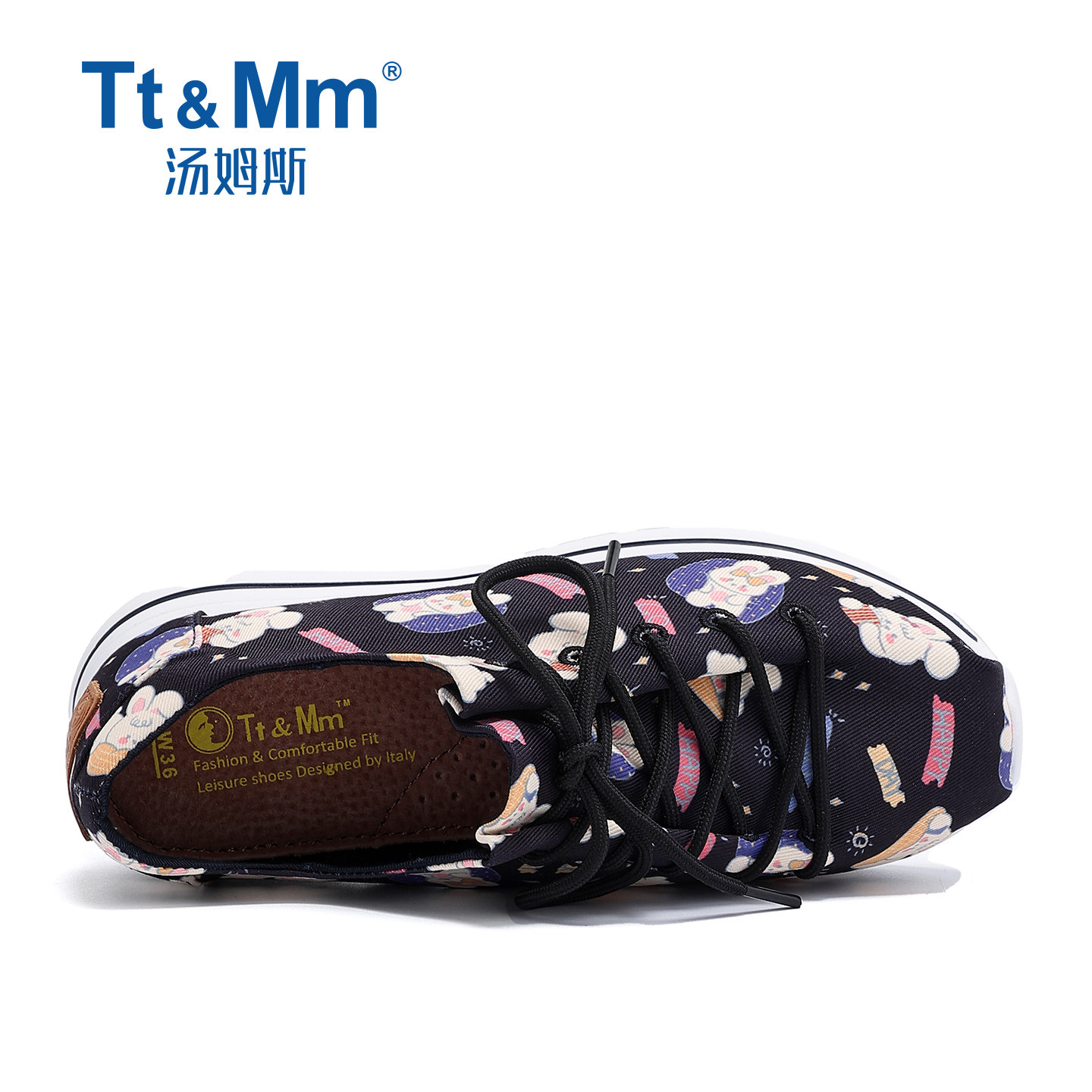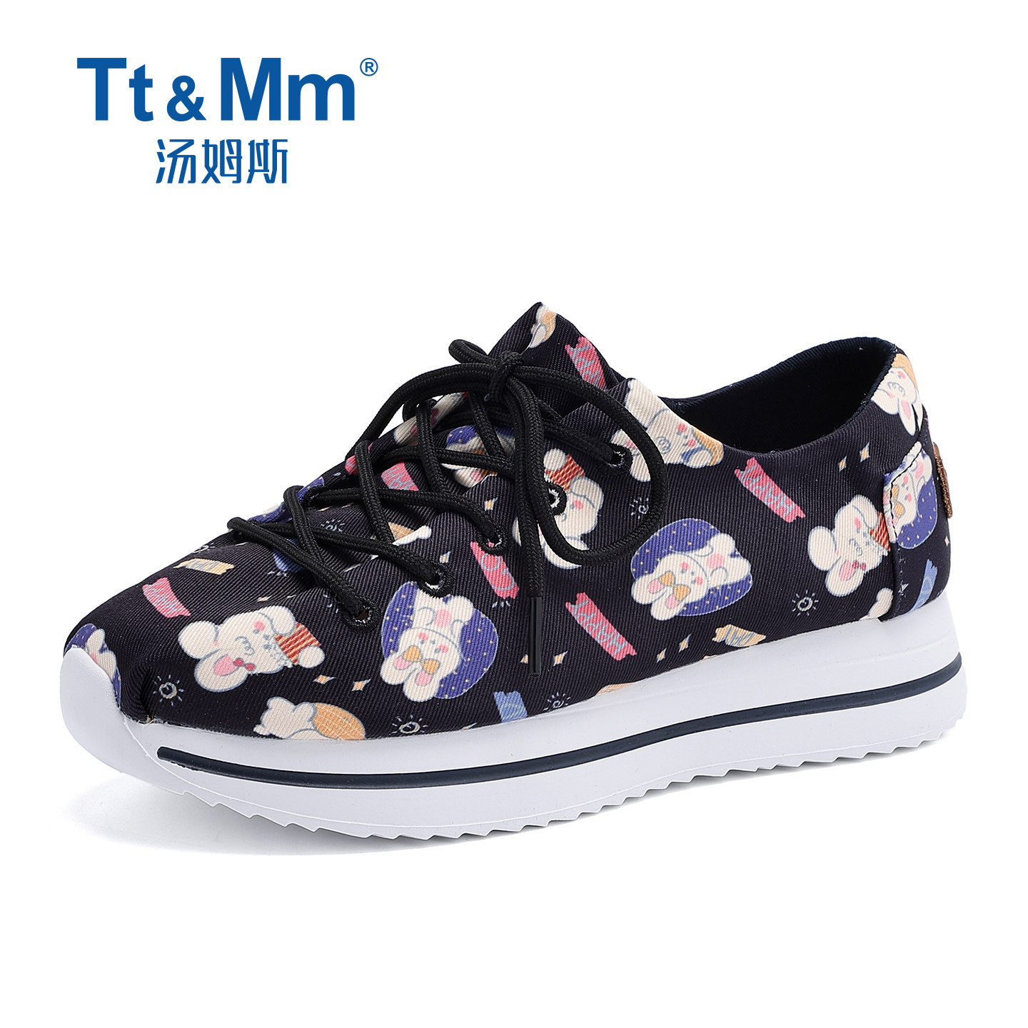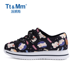 厚底系带透气轻便休闲鞋 Tt&Mm 2026春季 涂鸦印花帆布鞋 汤姆斯女鞋