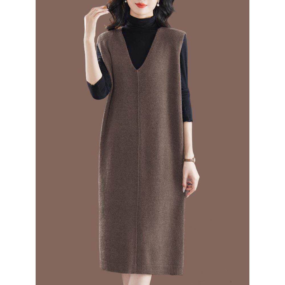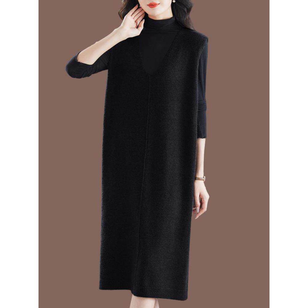 遮肚200斤 针织羊毛连衣裙胖mm宽松显瘦马甲裙无袖 秋冬加大码 女装