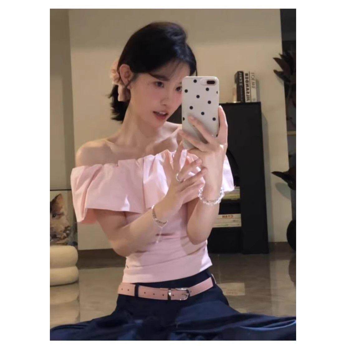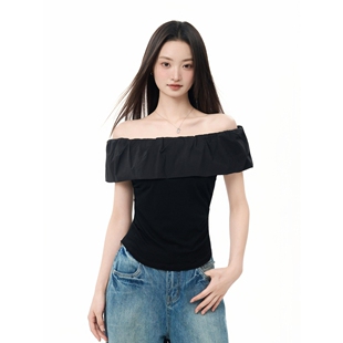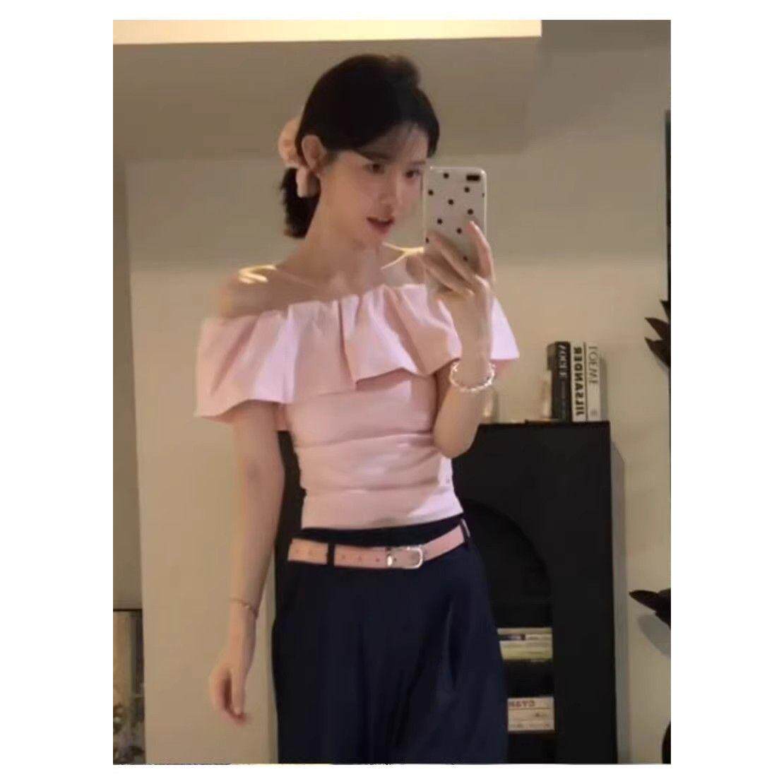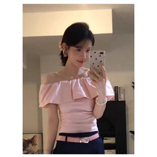 粉色一字肩上衣高级感女肩绝美设计感小众辣妹韩系穿搭纯欲风