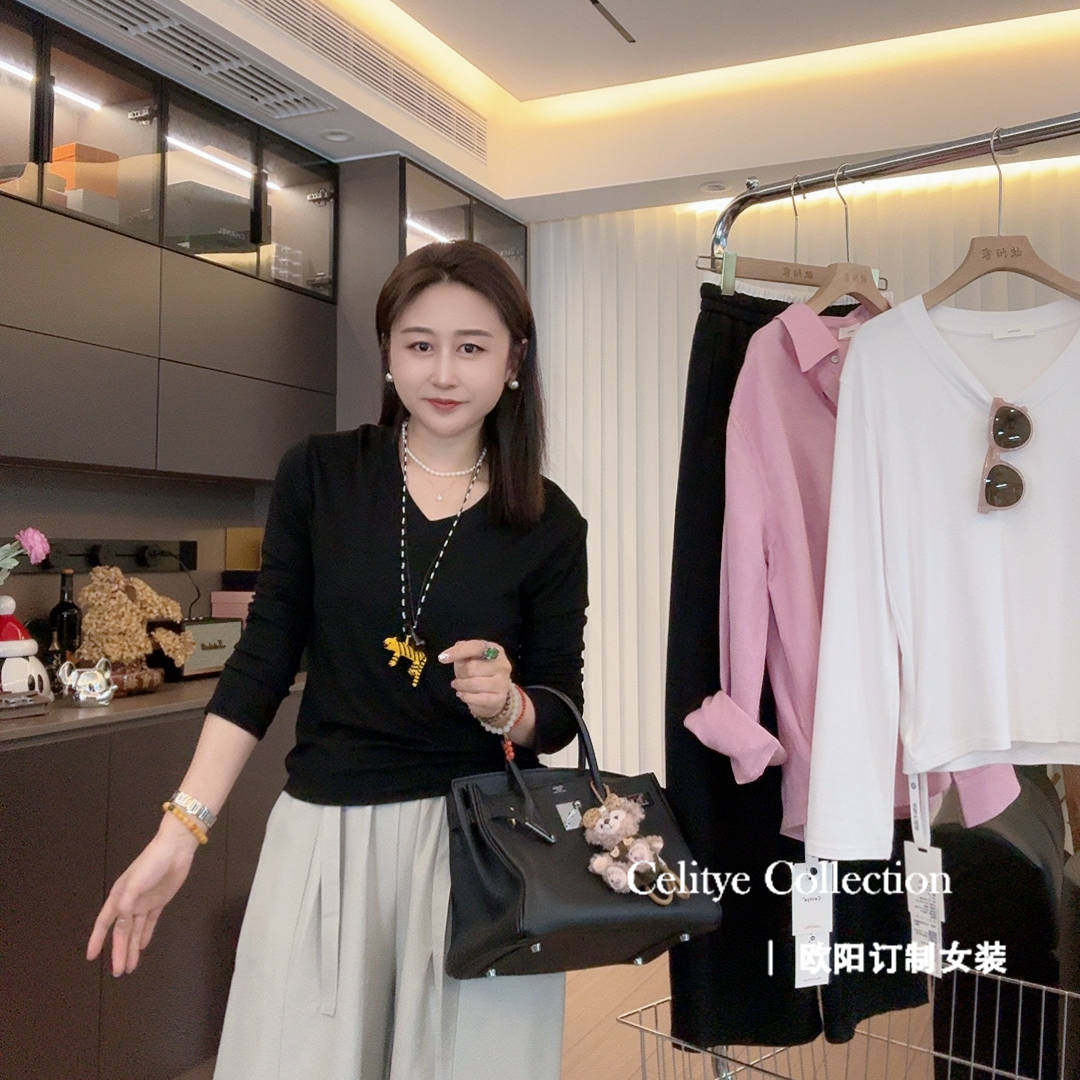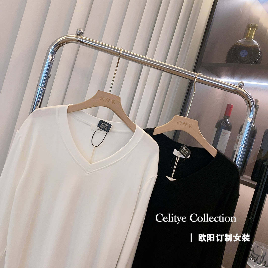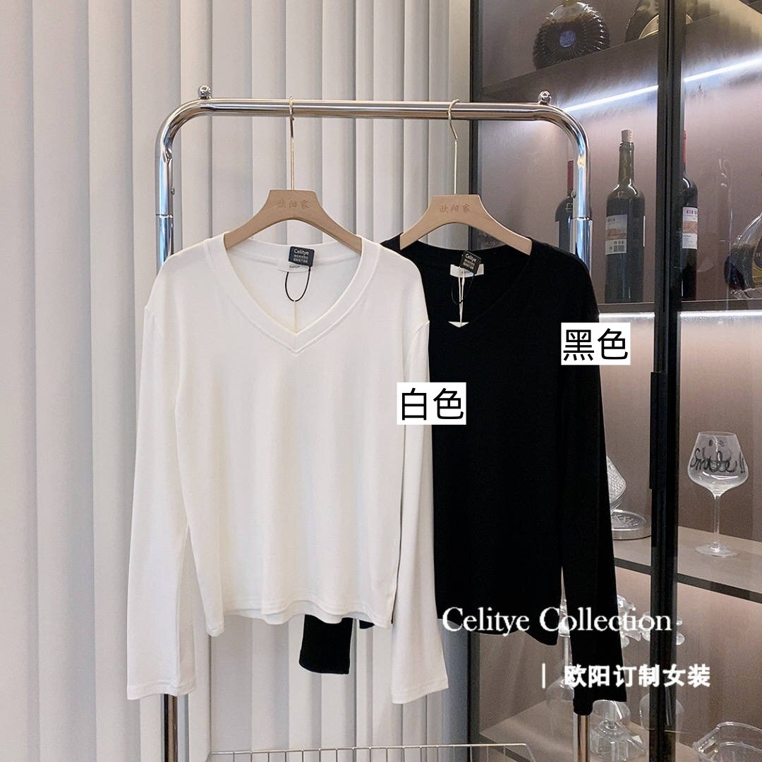 V领柔软百搭显瘦气质T恤上衣 高支CK领长袖 新款 面膜T3.0升级版
