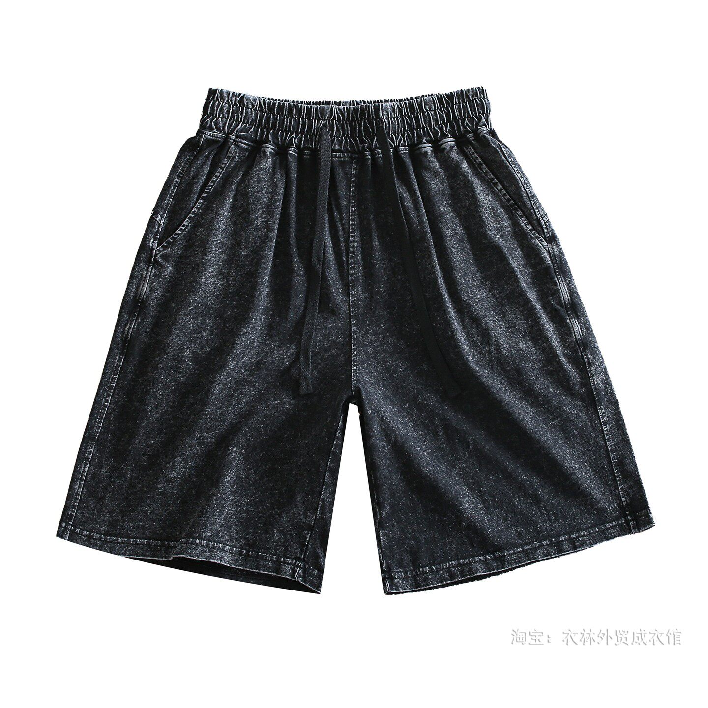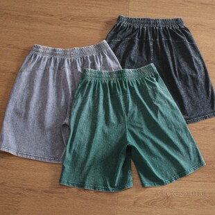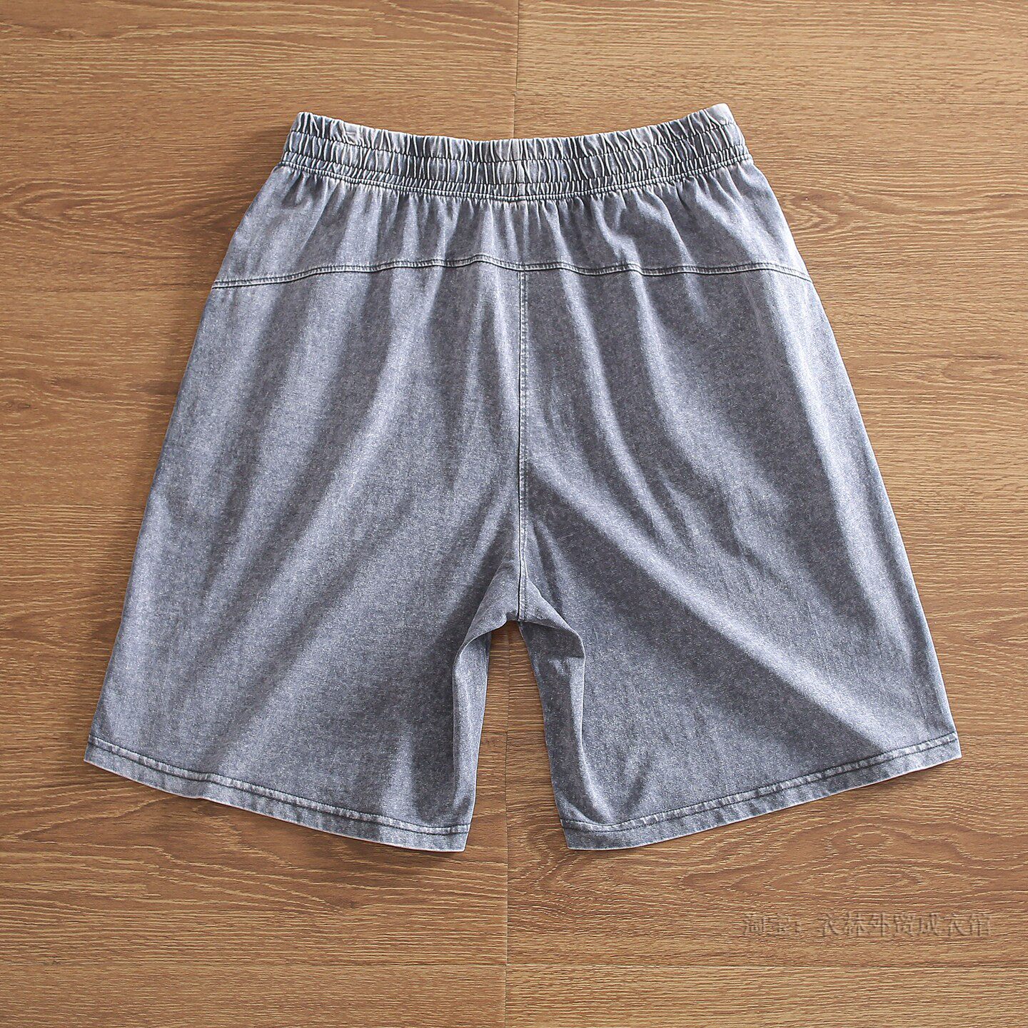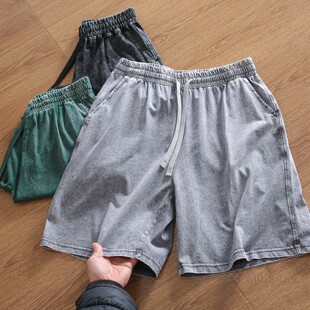 直筒宽松休闲松紧腰五分裤 夏男士 复古砂洗纯棉做旧短裤 240克美式