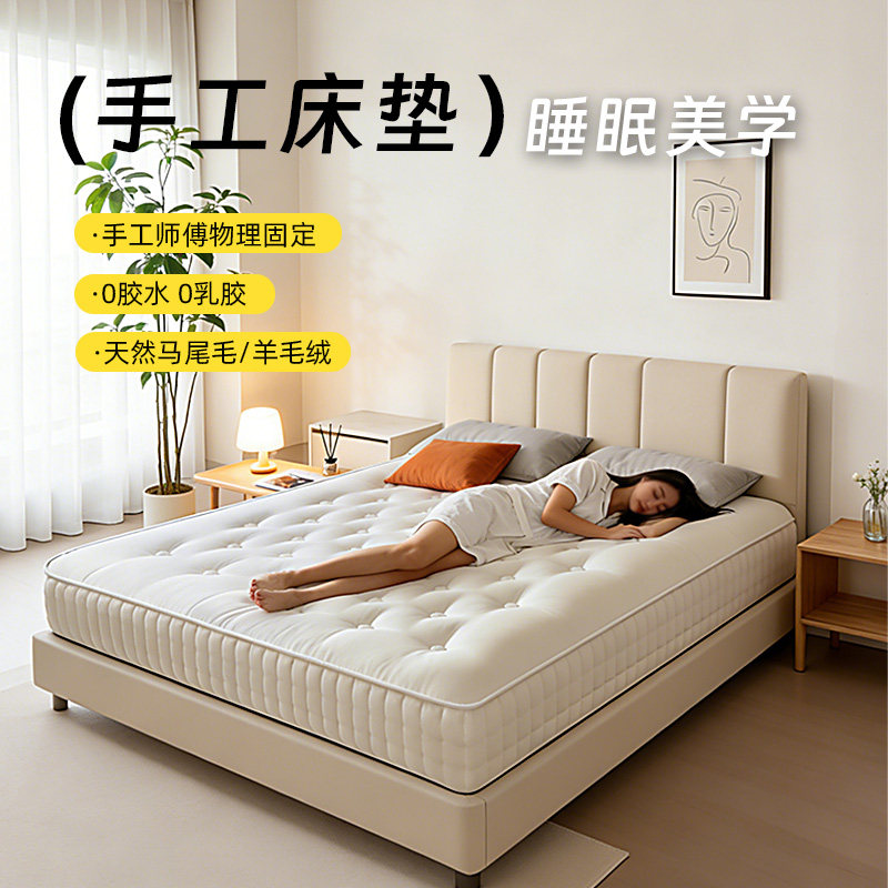盒子M8手工床垫马尾毛独立弹簧席梦思3D护脊卧室家用床垫手工拉扣