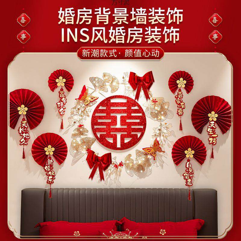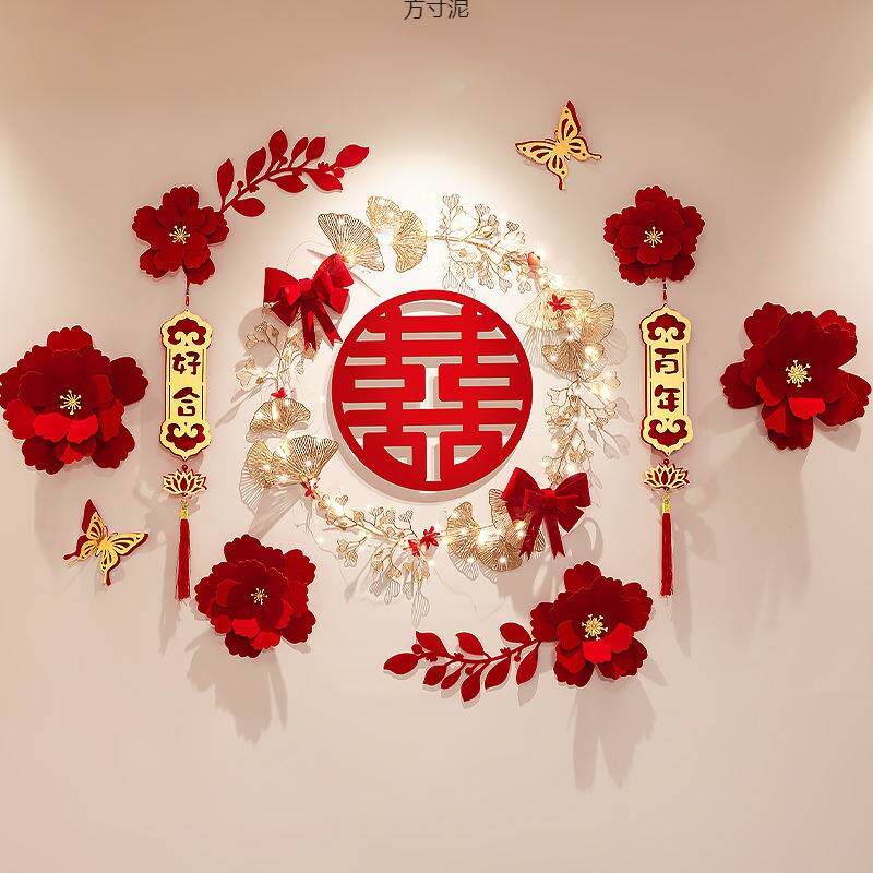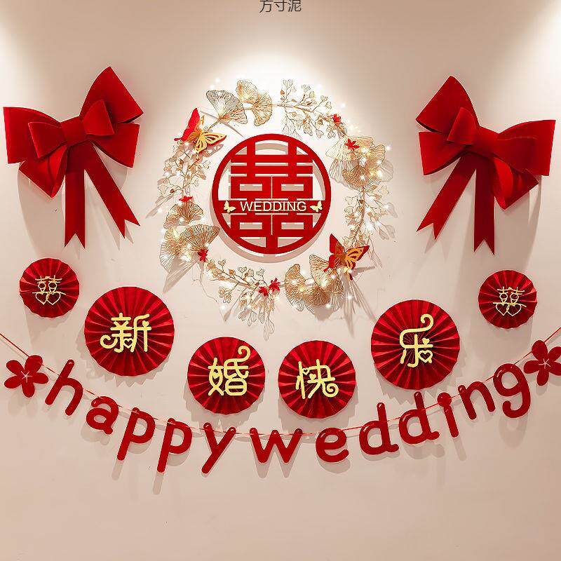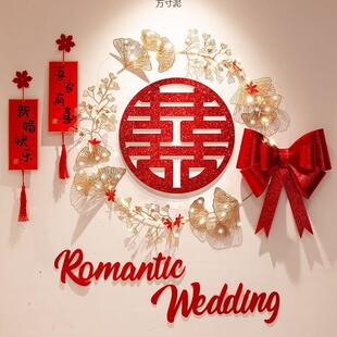 婚房布置结婚房间客厅背景墙装 厂 饰婚礼女方卧室新房喜字拉花套装