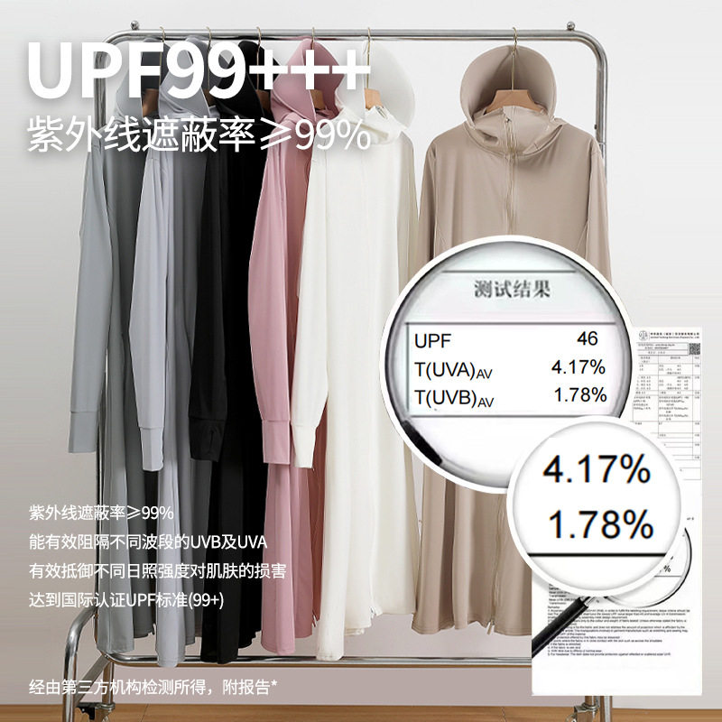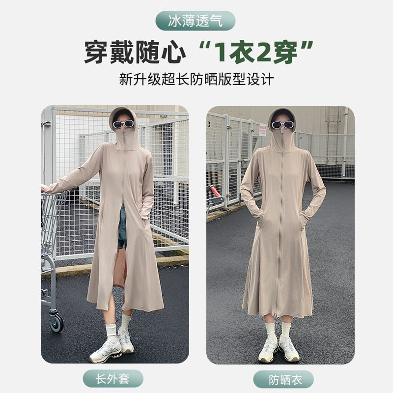 连帽轻薄长袖 UPF50 修身 防晒衣女长款 户外防紫外线冰丝防晒服 时尚