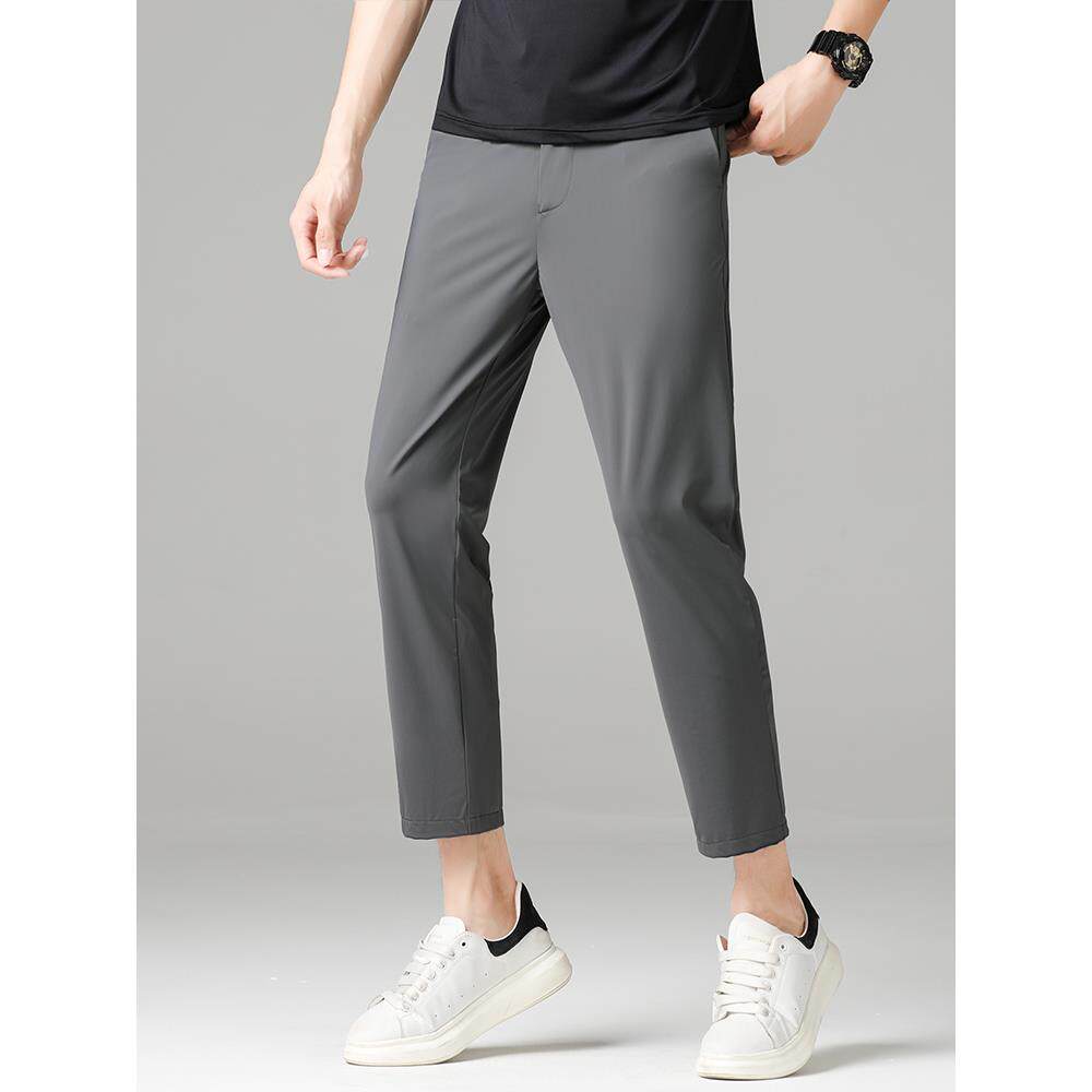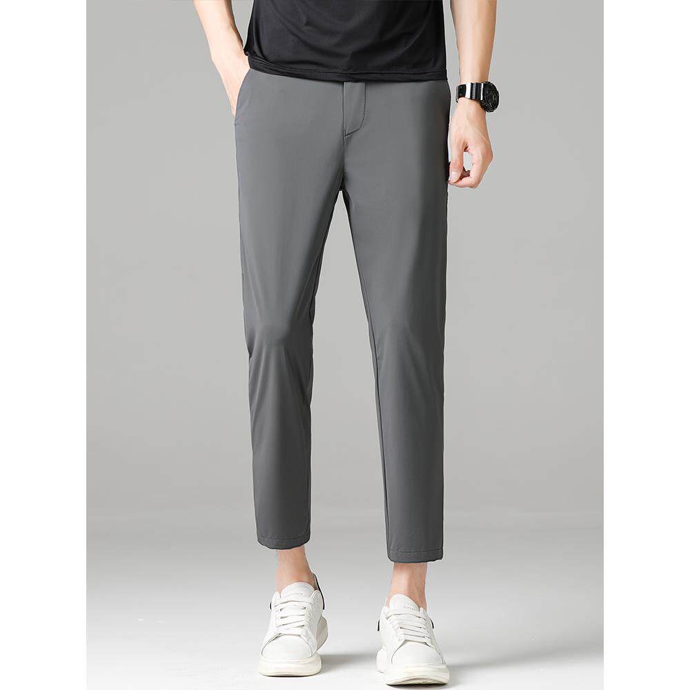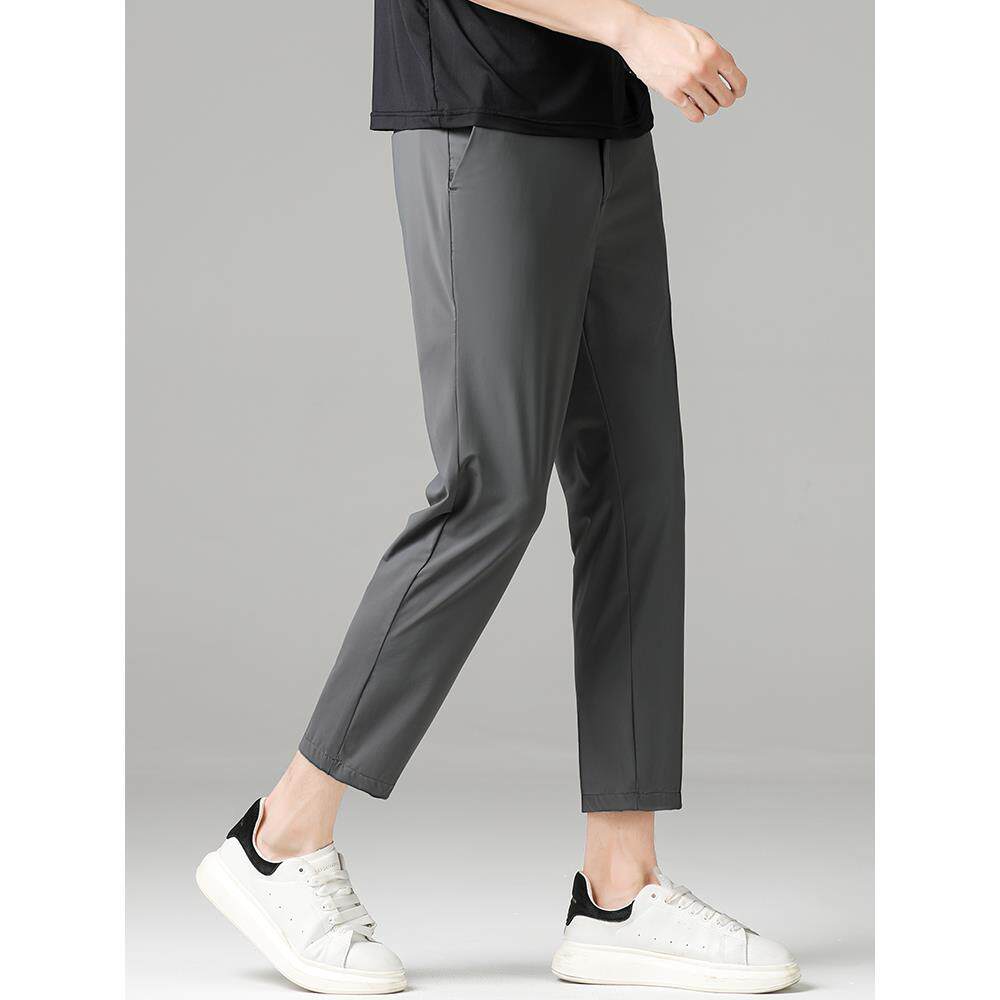 男士 运动百搭休闲裤 夏季 弹力直筒宽松男士 冰丝薄裤 vsyr九分裤