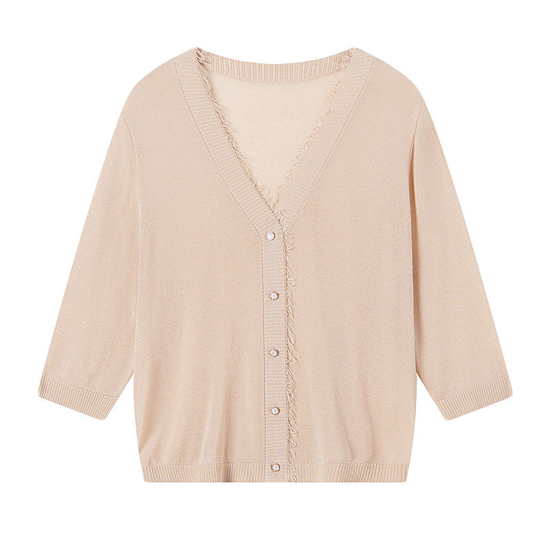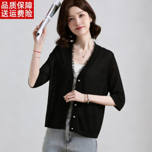 流苏小短款 女夏季 配裙披肩外搭白色防晒上衣薄 针织开衫 桑蚕丝中袖