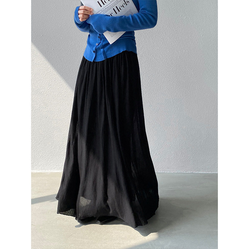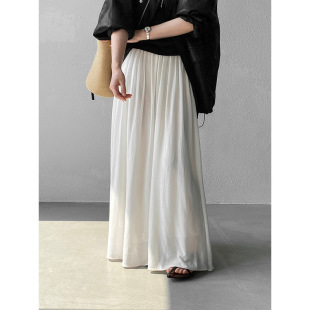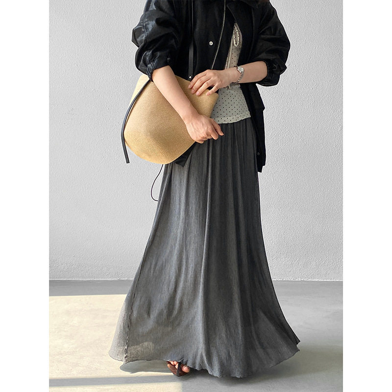 江左 100莱赛尔百褶长裙 垂坠感气质优雅半身裙百搭高腰天丝F666