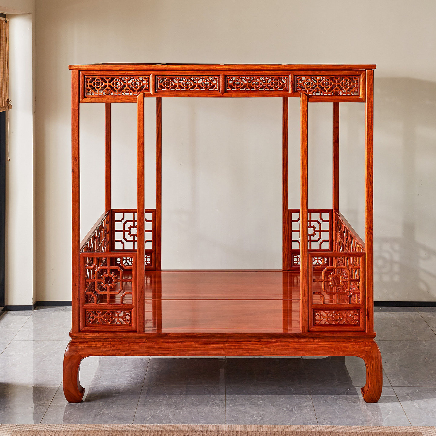 缅甸花梨木双人床中式 复古大床大果紫檀婚床全实木床榻红木架子床