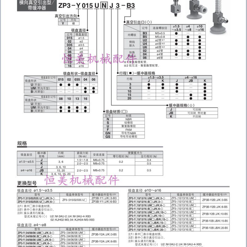 Y13 Y16BNJ Y侧边进气ZP3 Y10 SMC真空吸盘ZP3 BSJ3
