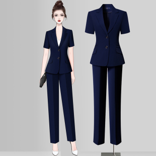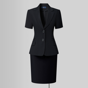 薄款 女职业装 短袖 套装 酒店餐饮服务员工作服通勤女士西服 西装 夏季