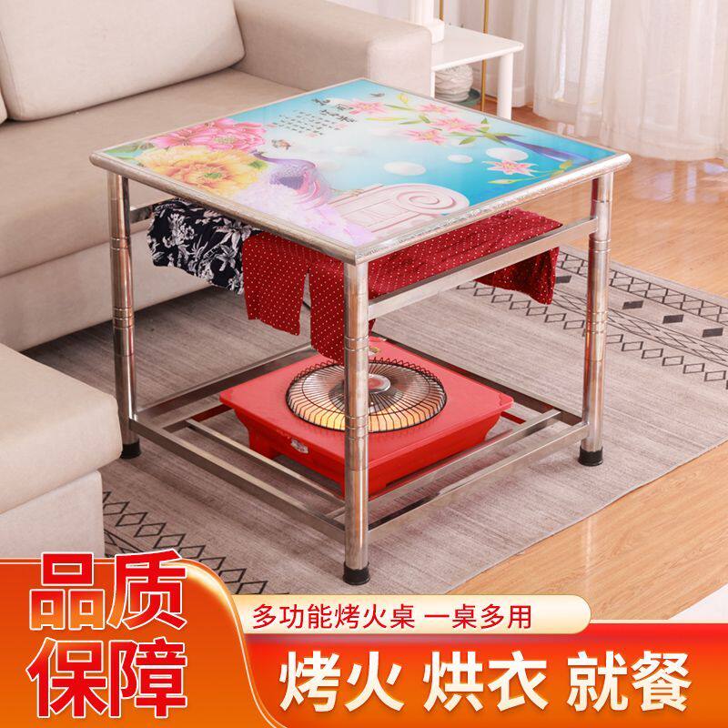 不绣钢折叠桌子烤火桌取暖桌冬季 家用多功能烤火棋牌娱乐吃饭餐桌