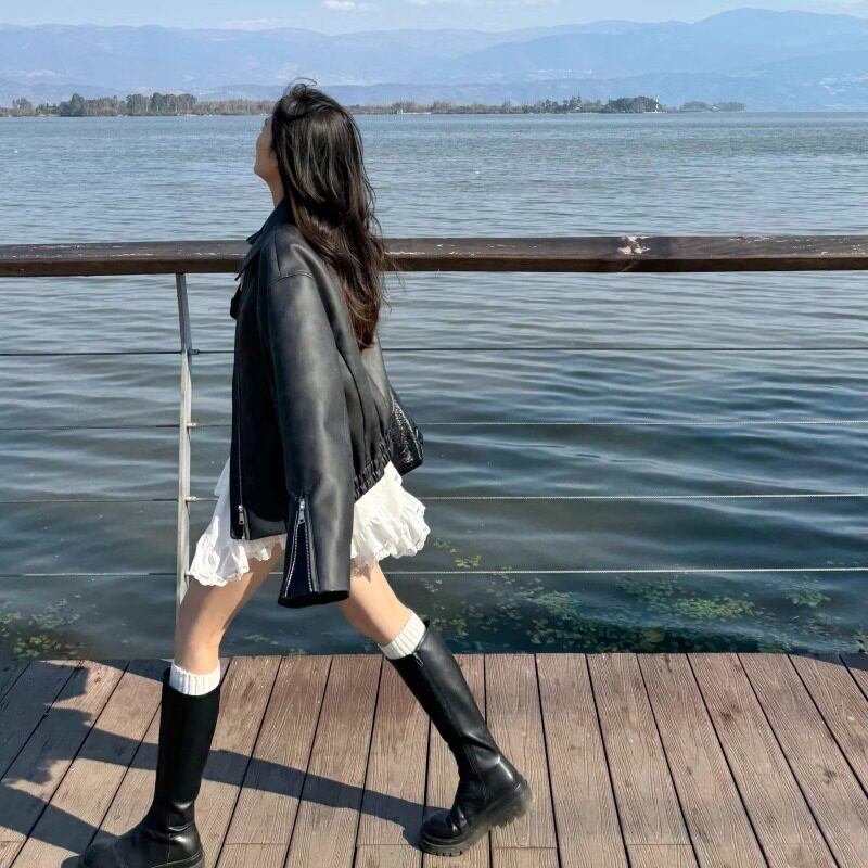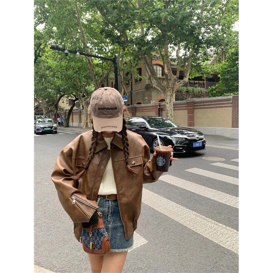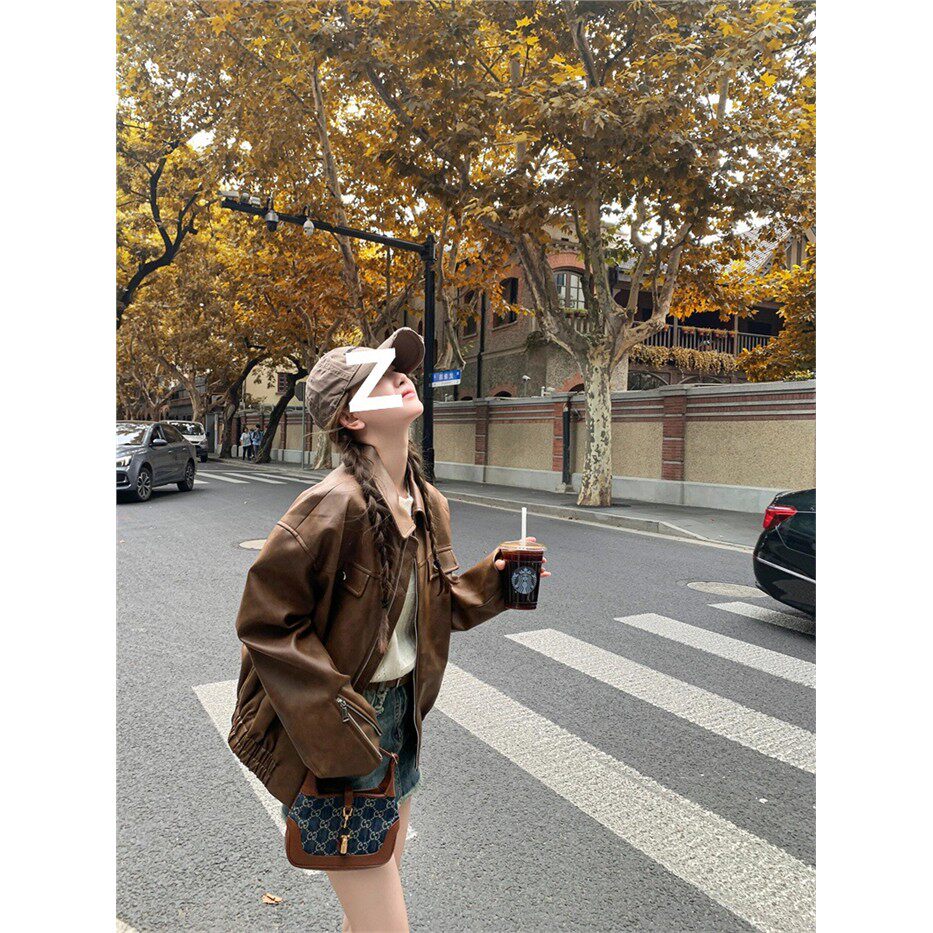 时尚 韩版 小个子外套女 复古PU咖色皮衣夹克2026秋新款 2026秋冬美式