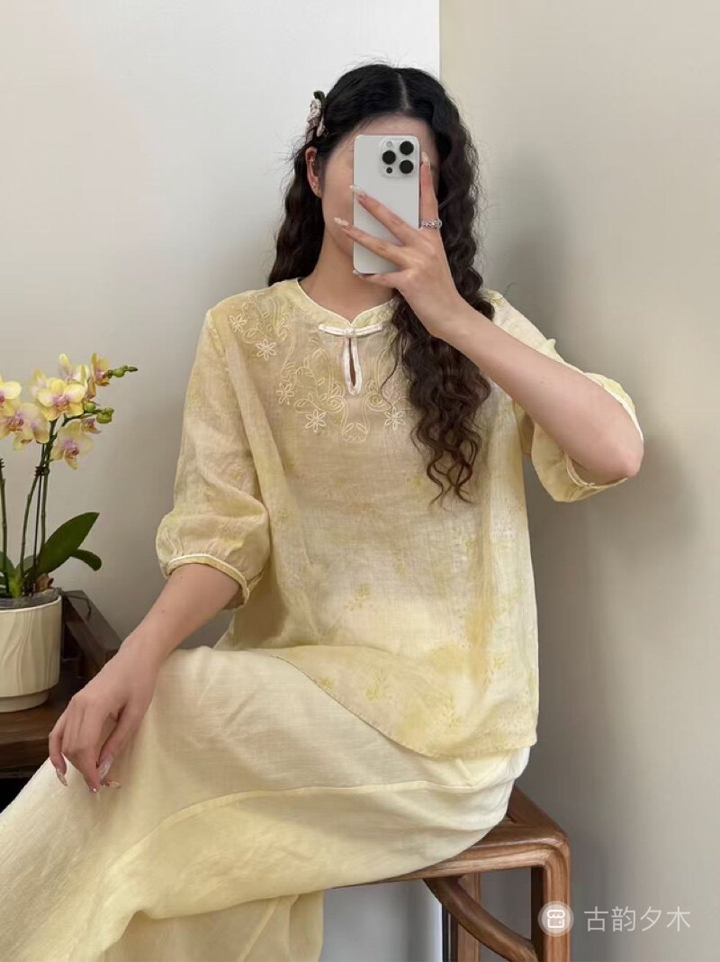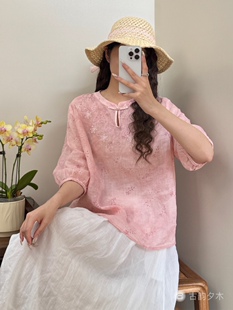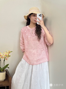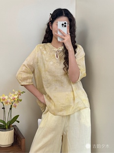 清凉感宽松舒适减龄 国风苎麻上衣刺绣烧花夏季 2026新款 新中式