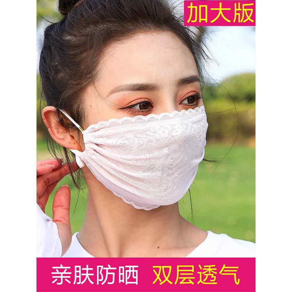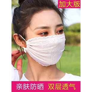 薄口罩女防晒蕾丝面纱防紫外线冰丝透气遮阳加 夏季 UPF50 2026新款
