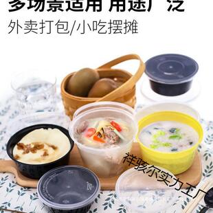 200 300ml一次性打包盒餐盒小菜水果冰粉碗汤碗透明黑色饭盒 280