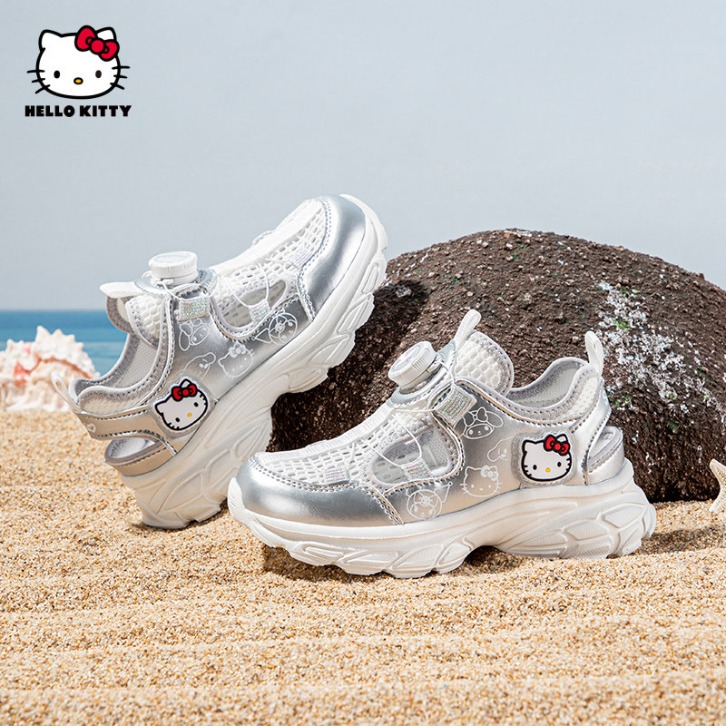 轻老爹鞋 女小学生透孔框子鞋 潮 2026夏季 凯蒂猫女童镂空网眼运动鞋