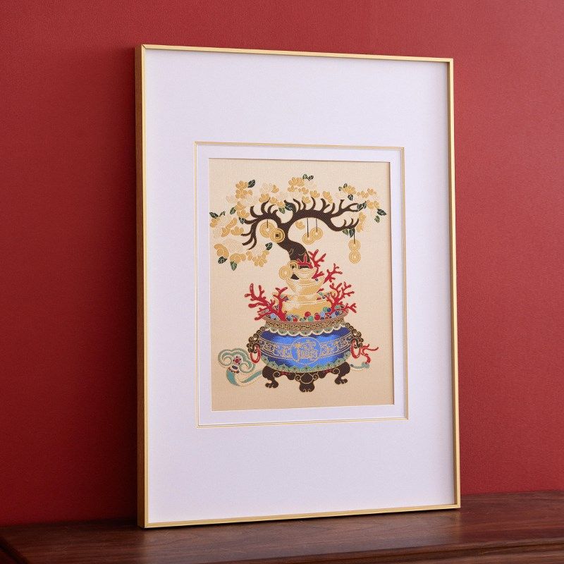 南京云锦研究所聚宝盆挂画手工装 饰画客厅玄关办公室商务礼品