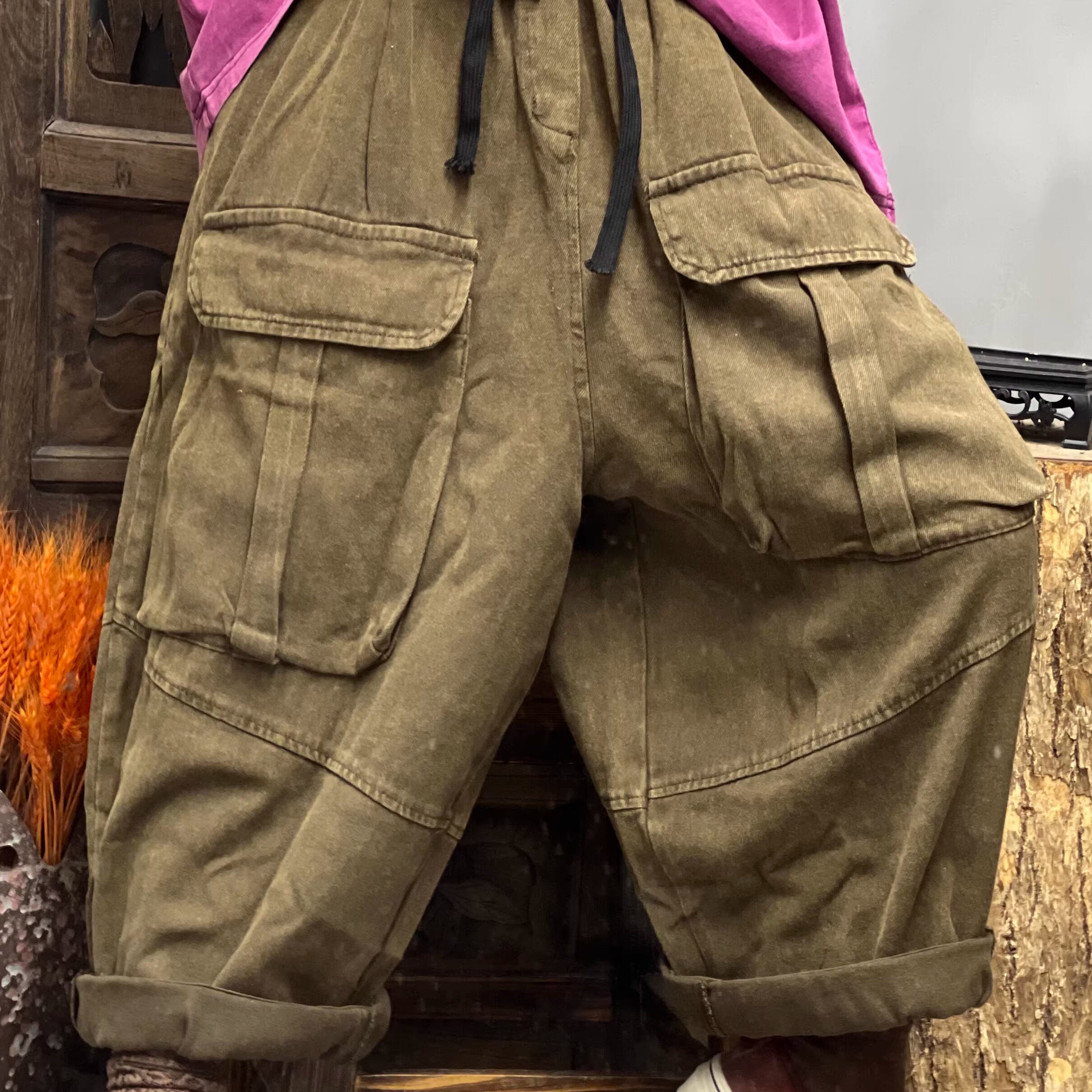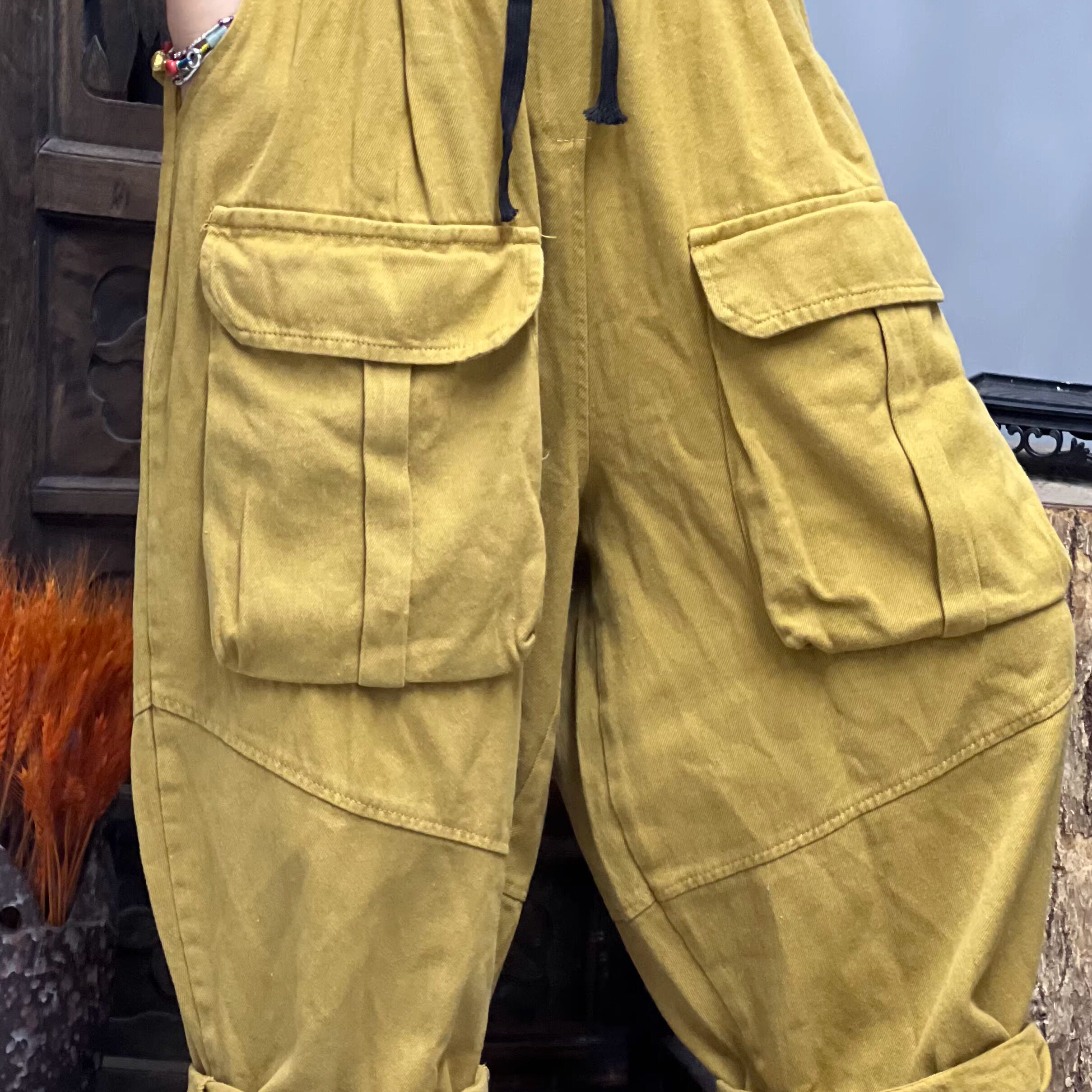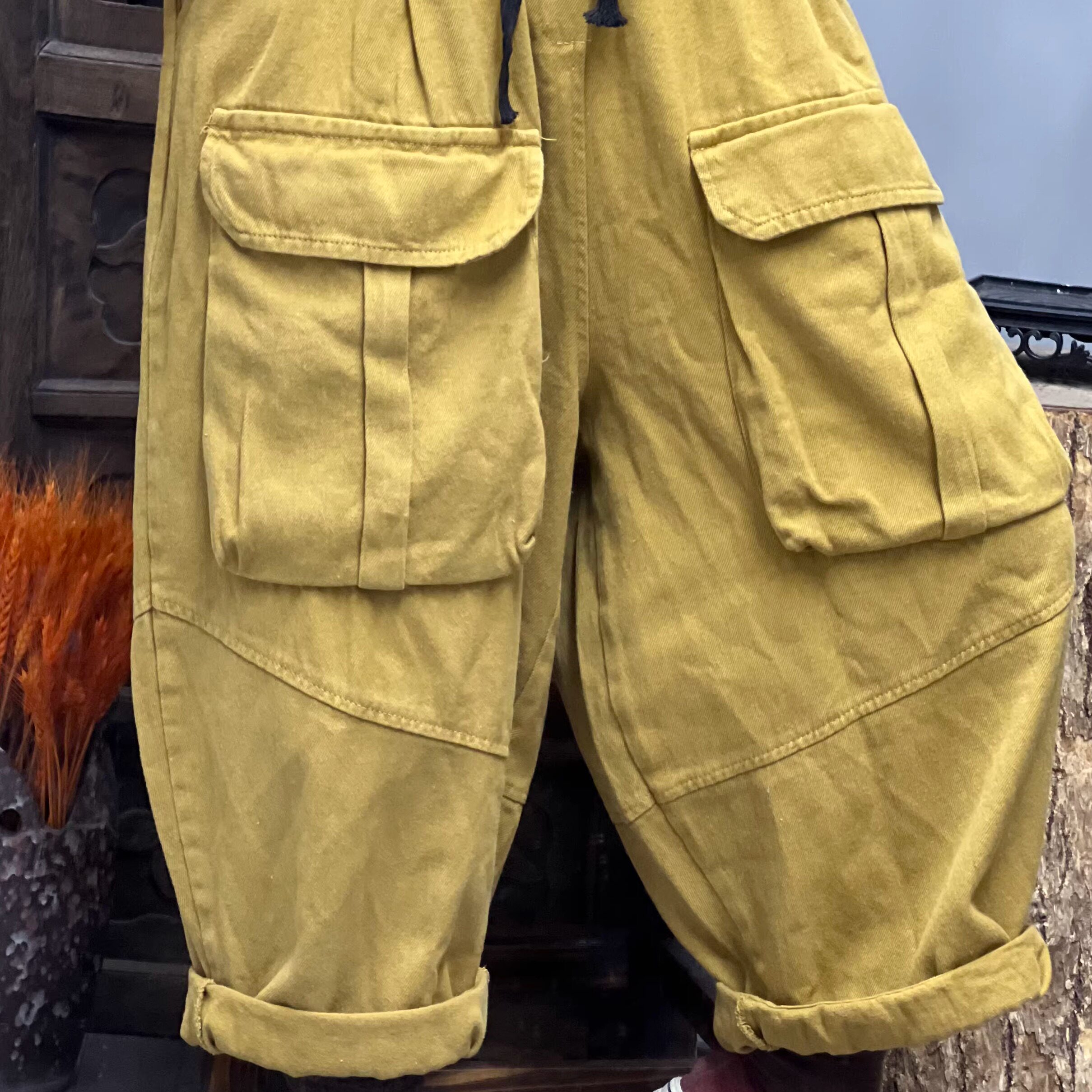 91066夏季 臀围134 新款 长82 大口袋棉麻休闲女士裤
