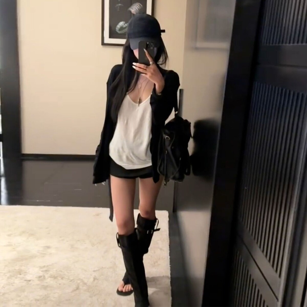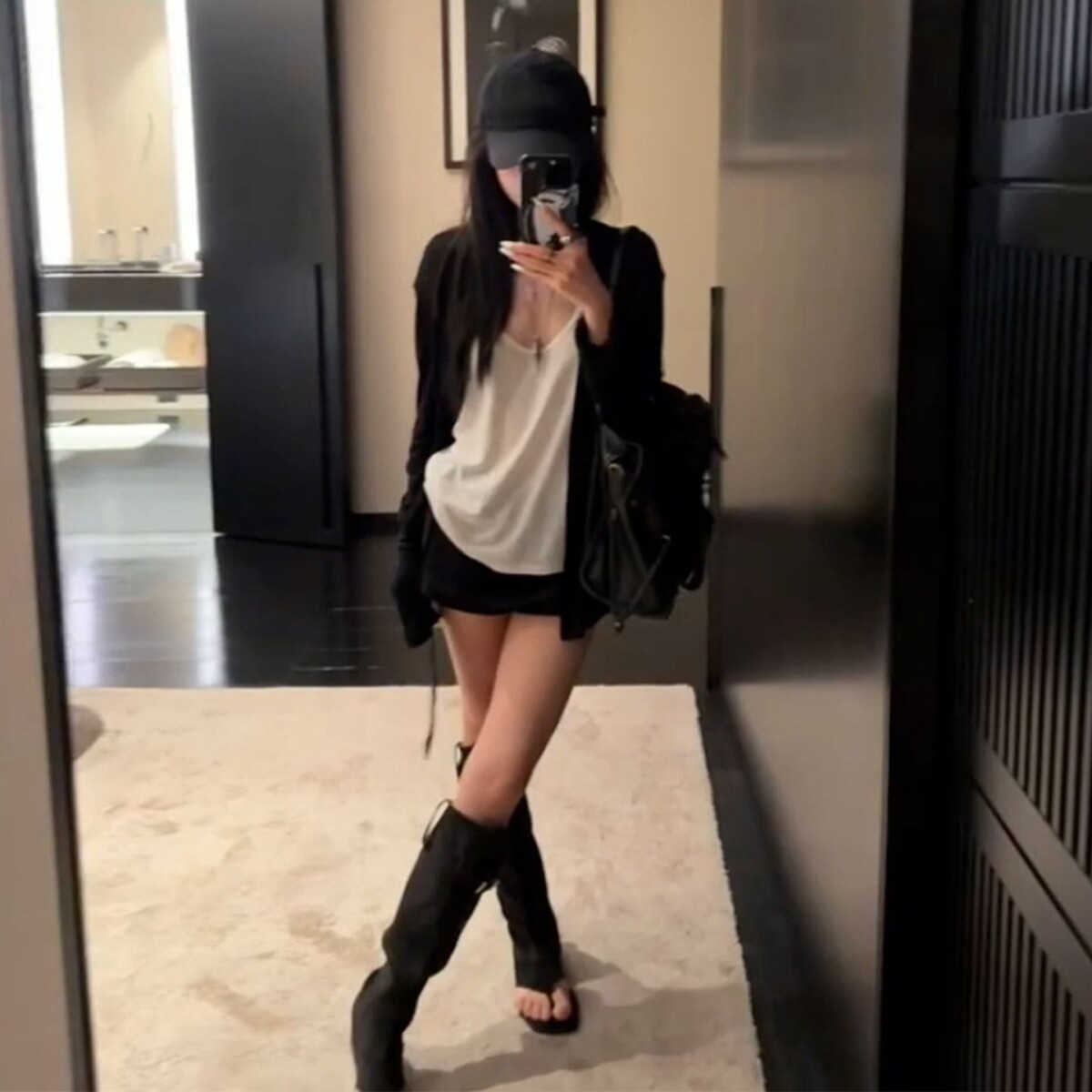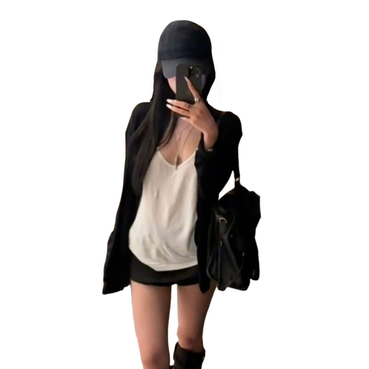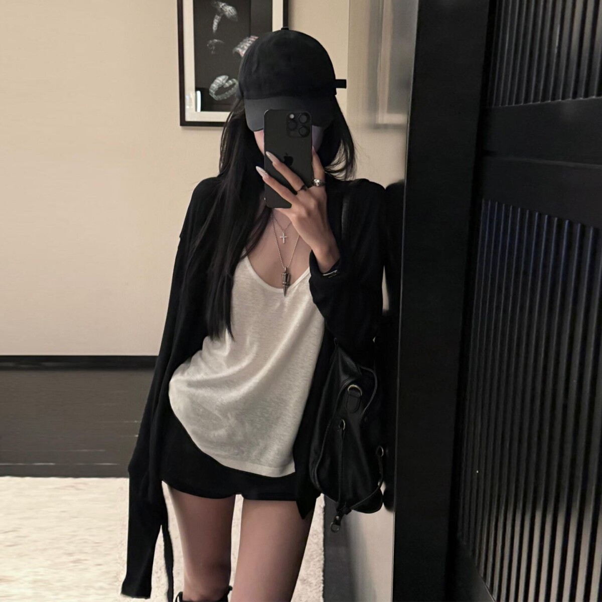 小外搭长袖 配吊带 上衣 外套女2025新款 韩系早秋穿搭黑色针织开衫