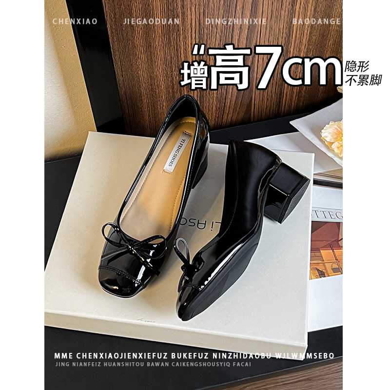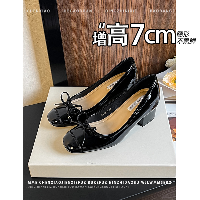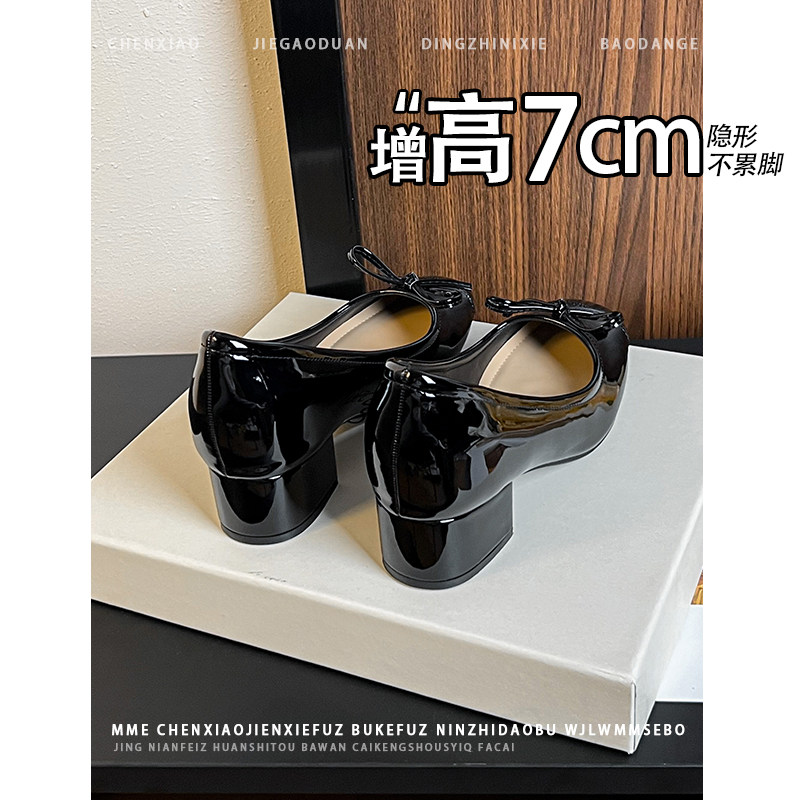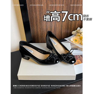 单鞋 粗跟黑色高跟鞋 女 隐形内增高7CM蝴蝶结2026春夏新款 不累脚