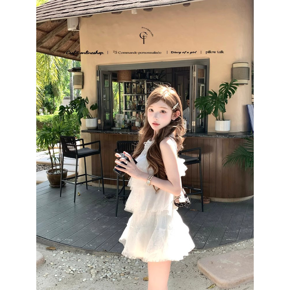 西西里岛杏仁 jor a网纱刺绣无袖 迟伞伞 上衣蓬蓬短裙套装