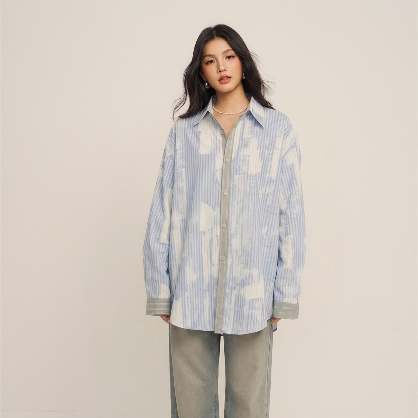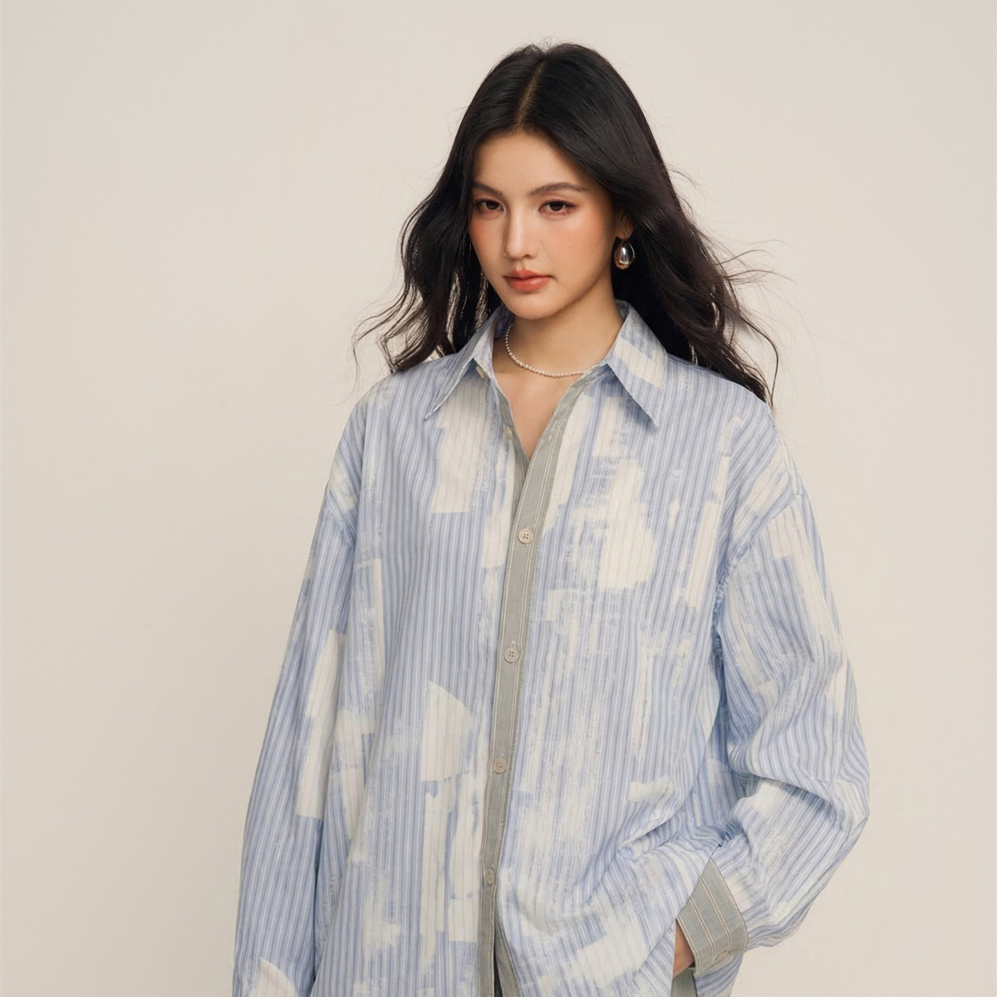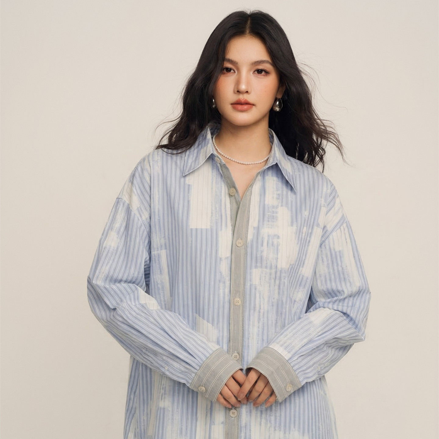 女宽松慵懒风长袖 蓝白条纹衬衫 设计感上衣 冬川十里衬衫 CHILLZOEY