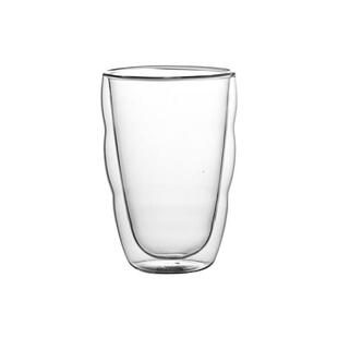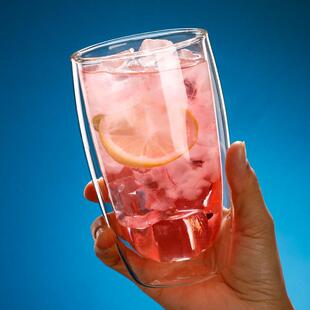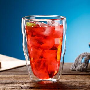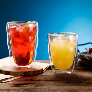 简约双层隔热透明玻璃杯耐冷热咖啡杯创意圆形水杯果汁杯子冷饮杯
