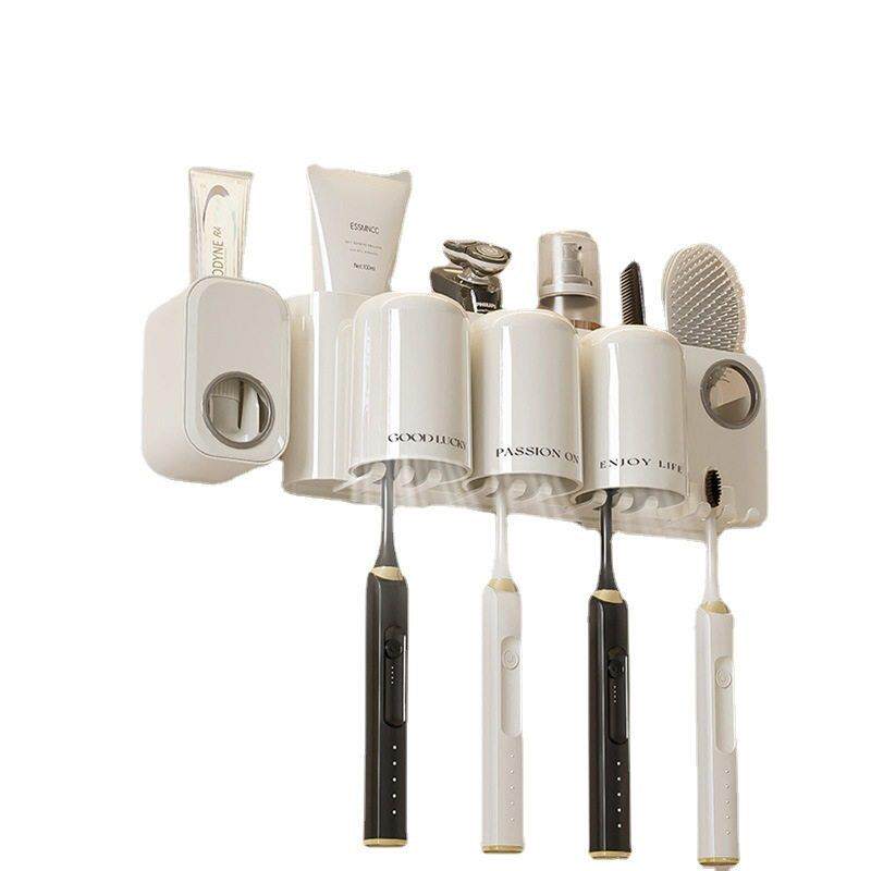 牙刷架子置物架卫生间挂式 牙膏挂架漱口杯免打孔牙缸架刷牙壁挂式
