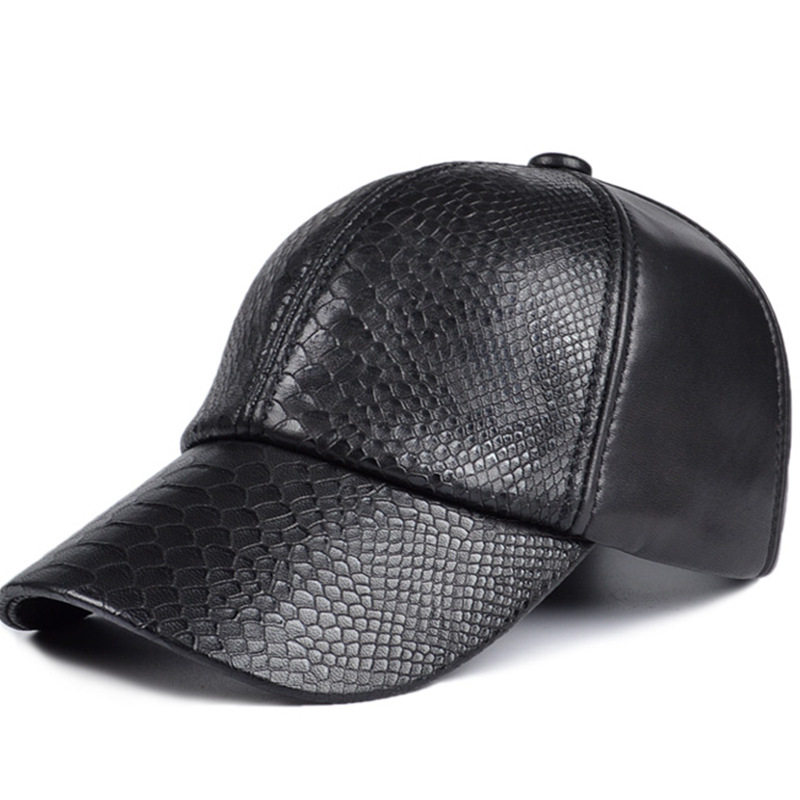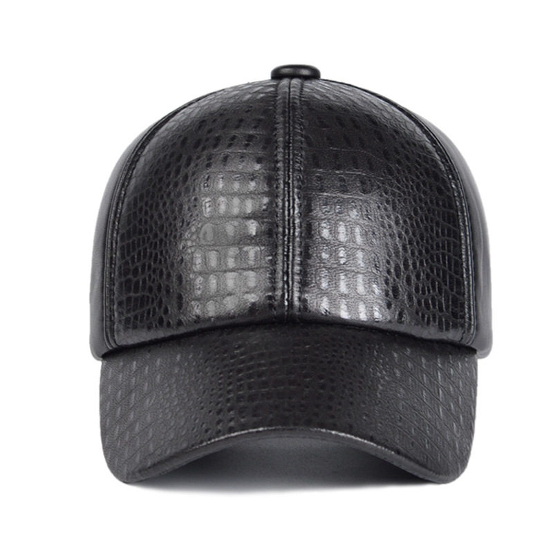 中青年真皮鸭舌帽可调节男士 户外防晒帽子绵羊皮鳄鱼纹大檐棒球帽