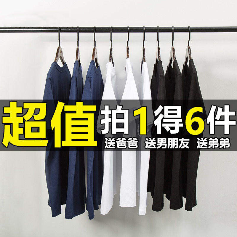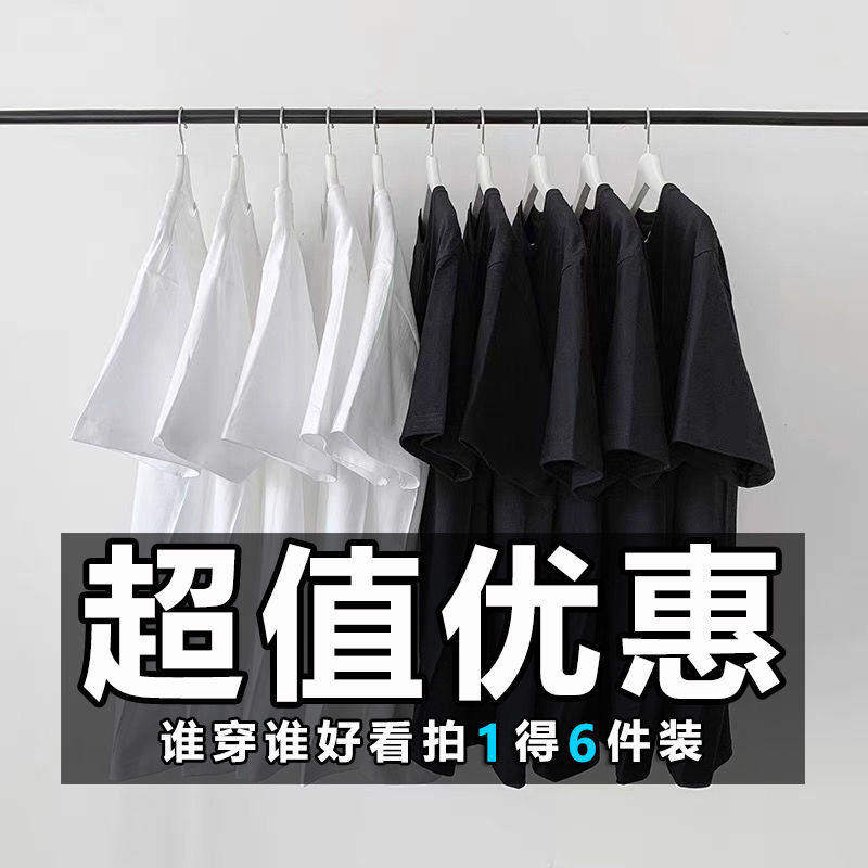 买一送五美式 女情侣体恤黑色打底上衣 重磅纯色白色女t恤内搭短袖