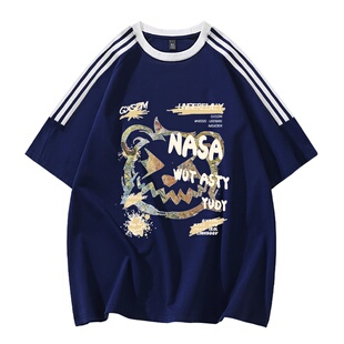 t恤男女款 NASA联名美式 宽松重磅纯棉短袖 三条杠夏季 百搭印花半袖
