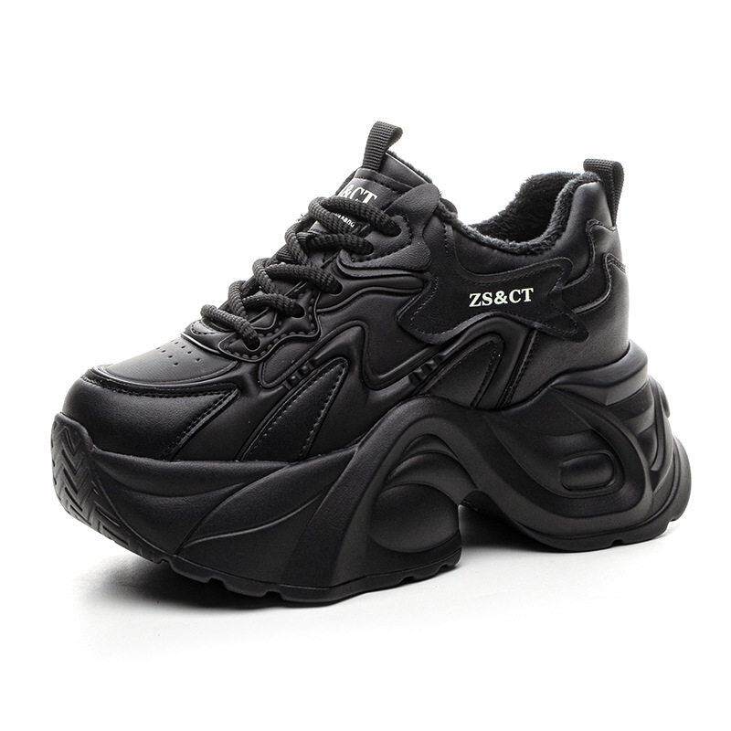 运动鞋 加绒显脚小增高休闲 女2025秋冬新款 西瑞真皮厚底7CM老爹鞋