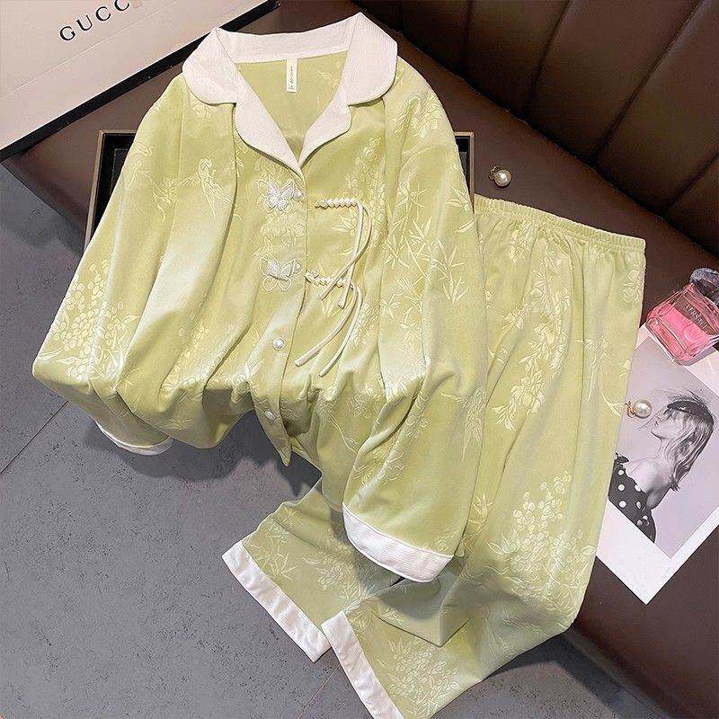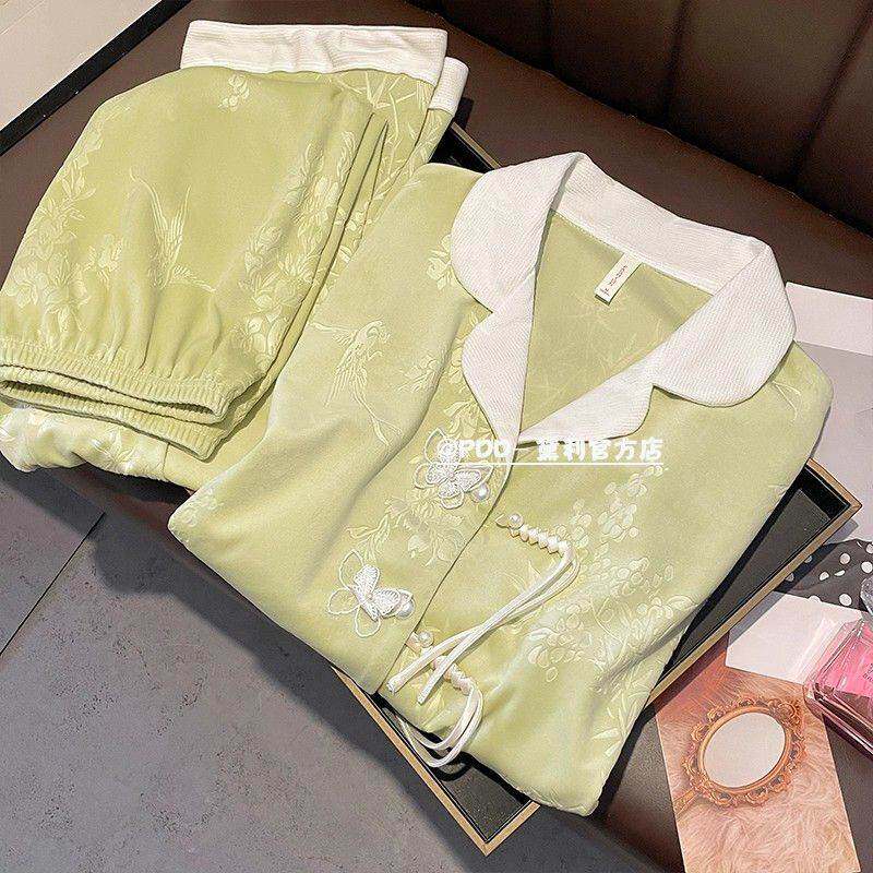 新中式 套装 国风家居服 加厚保暖长袖 高级感宫廷风德绒睡衣女秋春季