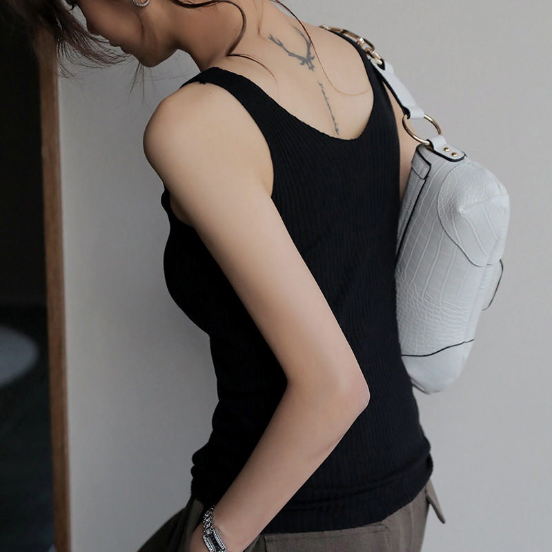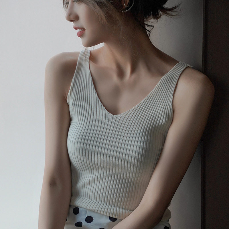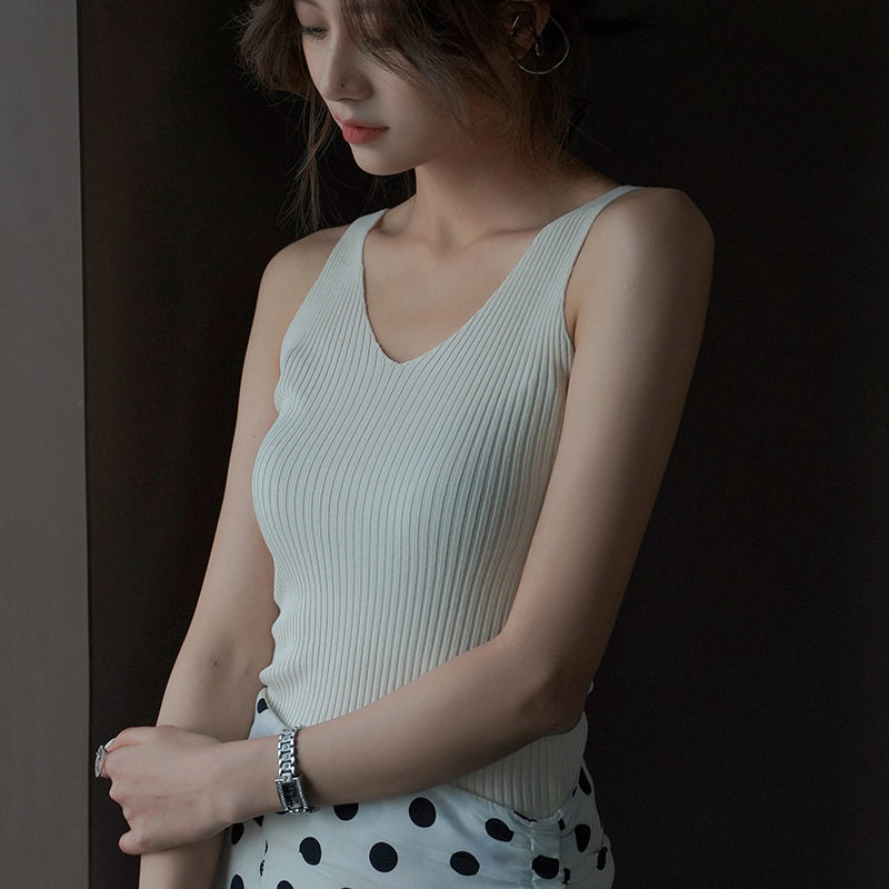 内搭打底上衣小背 外穿无袖 白色针织V领长款 背心网红小吊带女夏季