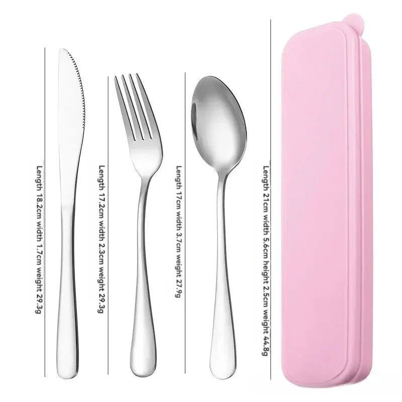 Steel Portable Cutlery Tableware Mirror Stainless Set 3pcs