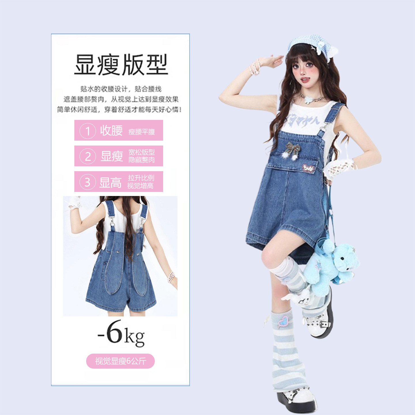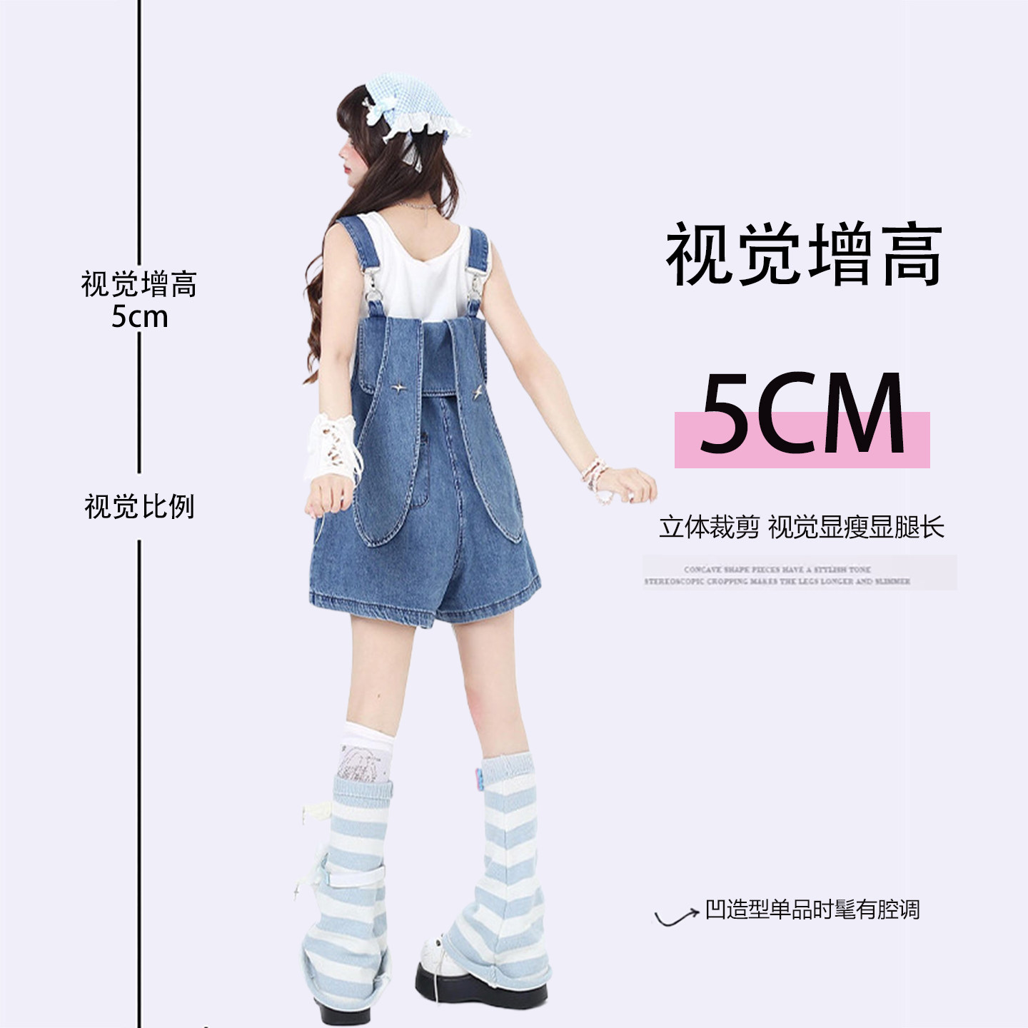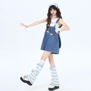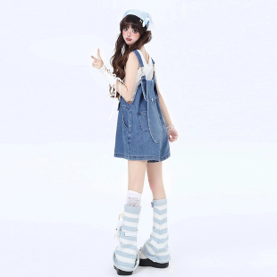 设计感小众兔耳朵连体裤 大码 女胖mm背带裤 可爱甜美风牛仔短裤 女装
