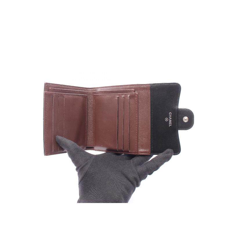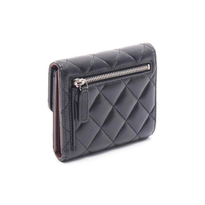 中古Chanel香奈儿女B级9新matelasse菱格纹羊皮短钱包黑色