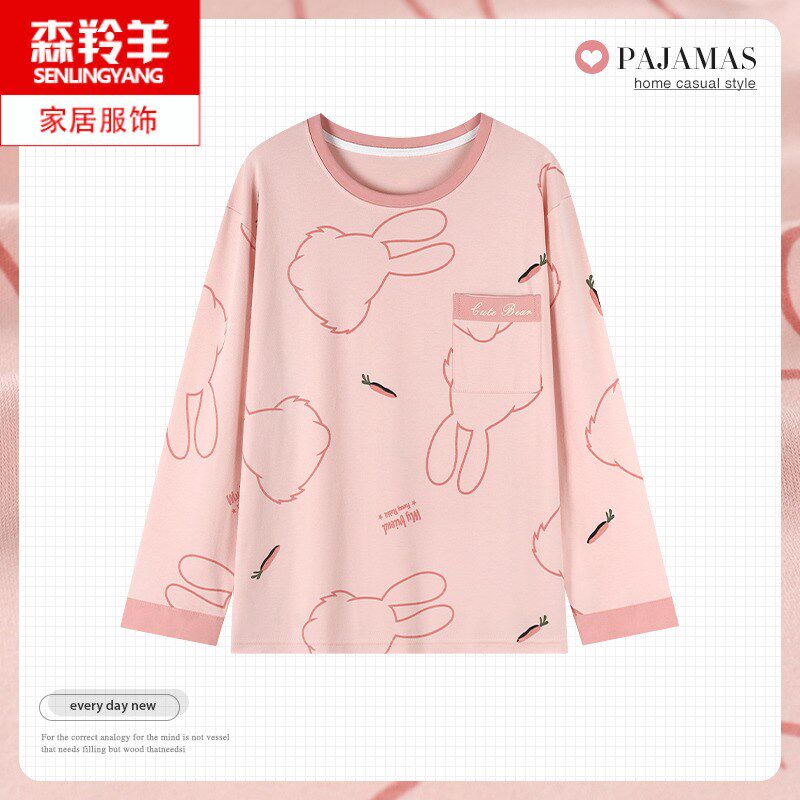 睡衣女纯棉单件上衣居家长袖 休闲套头单衣家居服 t恤薄女生春秋季